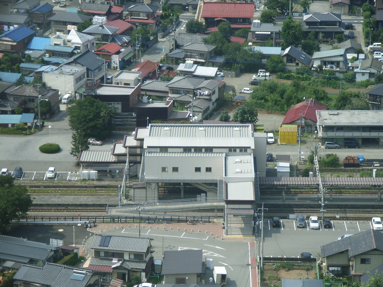 역 남쪽 산 위에는 파스토랄 뷰 가쓰라다이라는 분양 주택지가 있다.[1] 2006년까지 산 위와의 연락을 위해 셔틀 가쓰라다이라는 자석을 사용한 모노레일이 무인 운전되었다.[1]