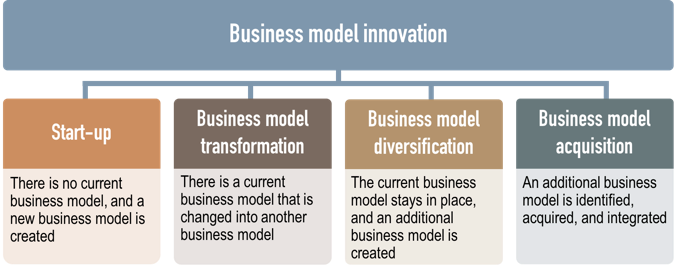 사업 모형 혁신은 조직이 새로운 비즈니스 모델을 만들거나 기존 비즈니스 모델을 변경하는 과정을 의미한다.[63][64] Massa와 Tucci(2014)는 사업 모형이 전혀 없는 경우 새로운 사업 모형을 만드는 것과 기존 사업 모형을 변경하는 것 사이에는 큰 차이가 있다고 강조했다.[40] 전자는 '사업 모형 설계', 후자는 '사업 모형 재구성'으로 지칭하며, 두 과정은 상호 배타적이지 않다고 설명했다.[40]