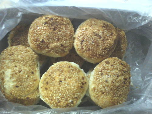 중국의 전설에 따르면, 구운 납작한 빵인 사오빙은 한나라 장군 반초가 서역(중국 서부 및 중앙아시아)에서 가져왔으며, 원래 胡餅|후빙중국어(오랑캐 빵)으로 알려졌다. 사오빙은 胡餅|후빙중국어에서 유래된 것으로 여겨지며,[3] 페르시아 및 중앙아시아의 난, 근동의 피타와 관련이 있는 것으로 여겨진다.[4][5] 당나라 시대에 외국 서양인들이 중국에서 참깨 케이크를 만들어 팔았다.[6]