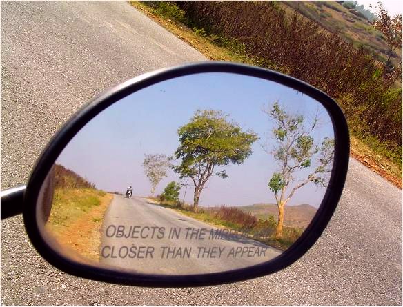 Why does the passenger side window on my car state 'objects in mirror are closer than they appear?