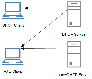 PXE를 이용한 네트워크 부팅에는 다음과 같은 구성 요소가 필요하다.