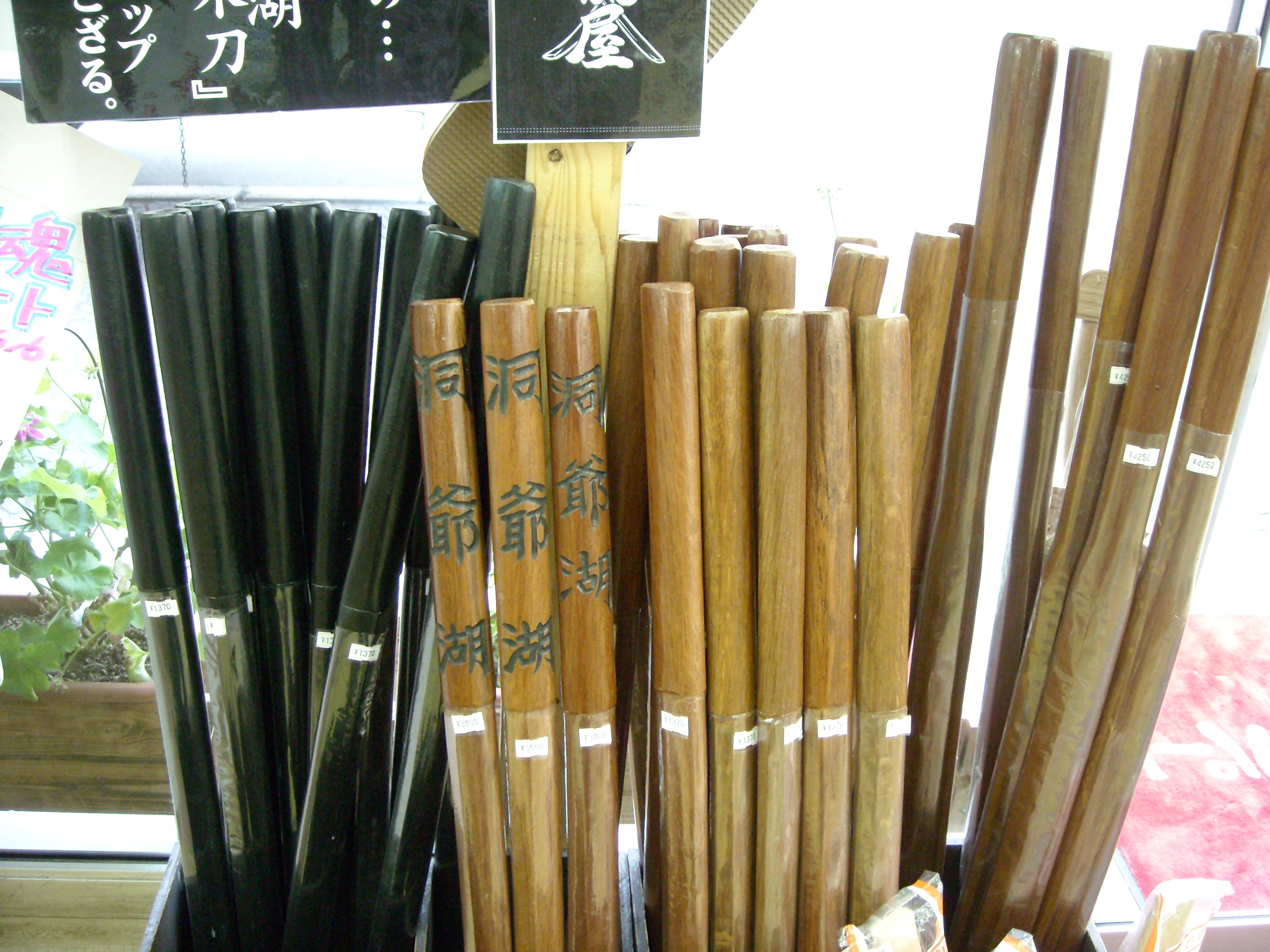 「洞爺湖」刻んだ木刀、洞爺湖温泉の土産物店で人気