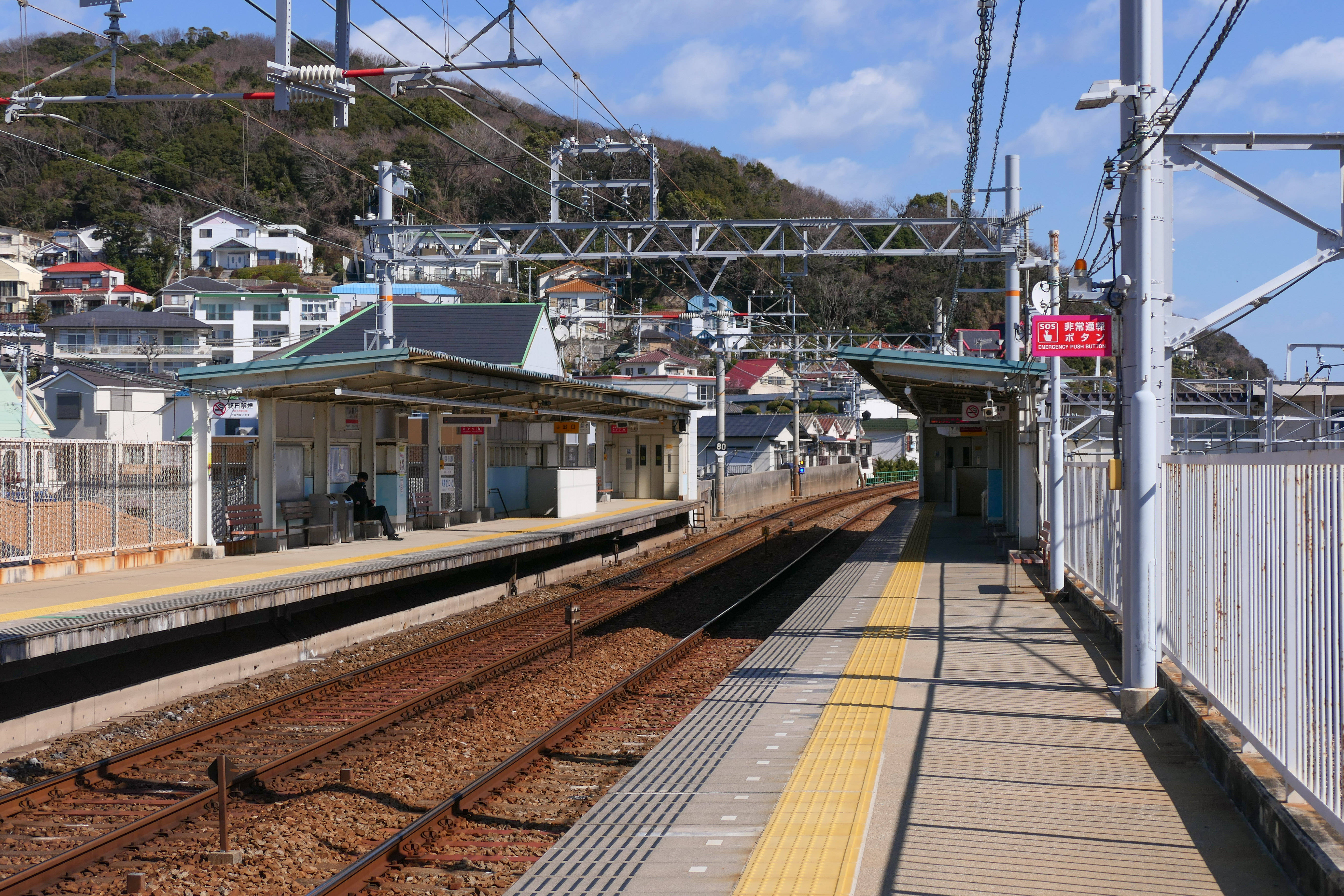 -- 산요 전기철도 본선 | 보통 | 스마우라코엔 (SY 07) | 우메다・니시다이 방면 | 다키노차야 (SY 09) | 산요히메지 방면 |