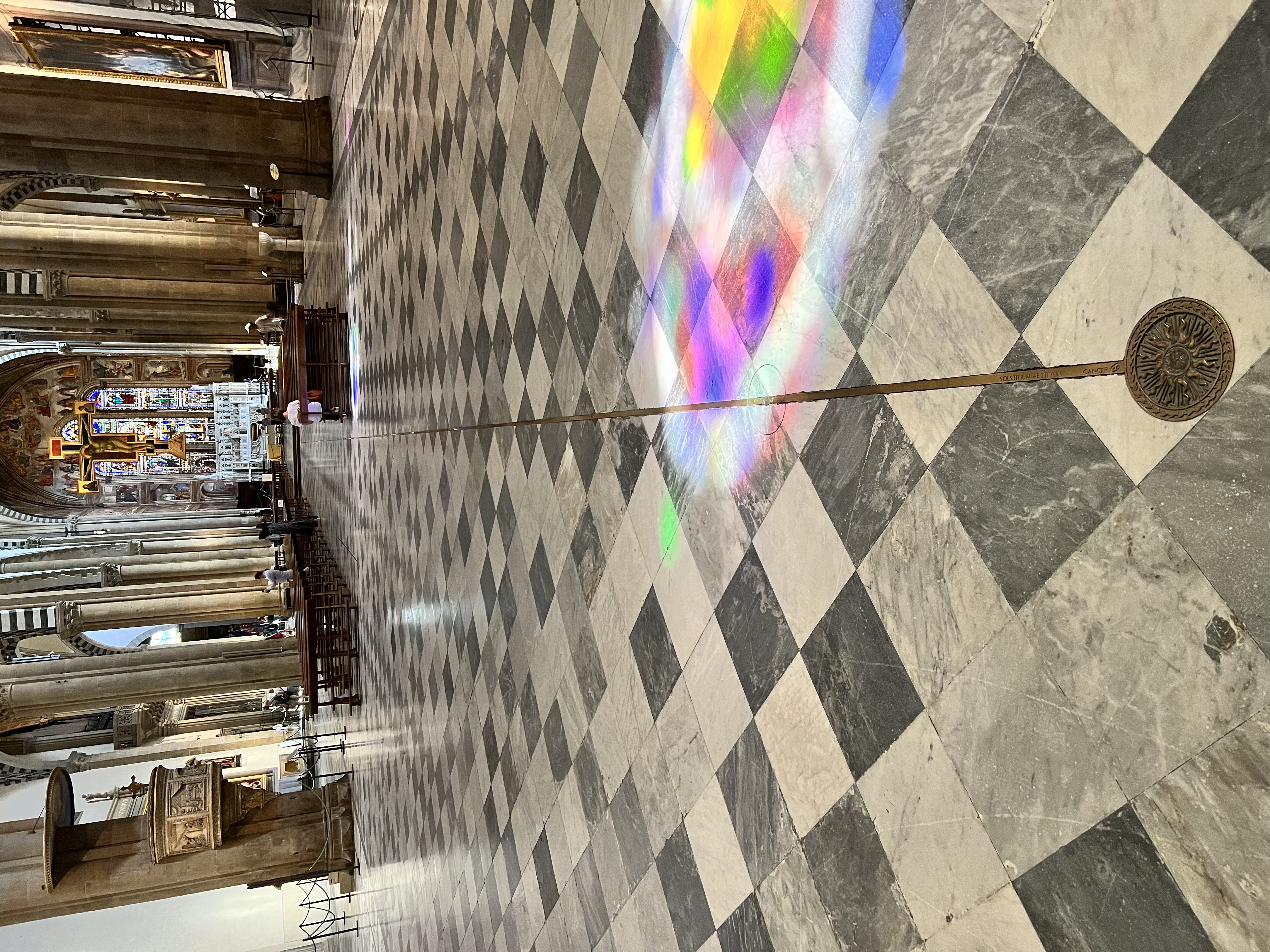 단티는 또한 혼천의보다 분점을 정하는 데 더 나은 방법으로, 남쪽을 바라보는 높이 21.35m의 원형 창문에 구멍을 뚫고 성당 바닥에 자오선을 그렸다. 그렇지만 그의 성당 내 건설 작업은 후원자인 코시모 1세 대공의 죽음으로 완료되지 못하였다.[16]