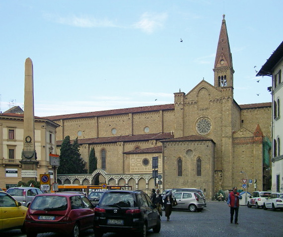교회 앞의 광장은 코시모 1세가 매년 열리는 마차 경주 대회('Palio dei Cocchi') 목적으로 사용하였다. 이 관습은 1563년부터 19세기 말까지 존재했다. 코르사 데이 코키 오벨리스크 두 개가 이 경주 대회의 시작 지점과 종료 지점을 나타냈다. 이 오벨리스크들은 고대 로마의 키르쿠스 막시무스를 본떠 세워진 것이었다. 오벨리스크에 세워진 청동 토르소는 1608년에 잠볼로냐가 만든 것이다.[1]