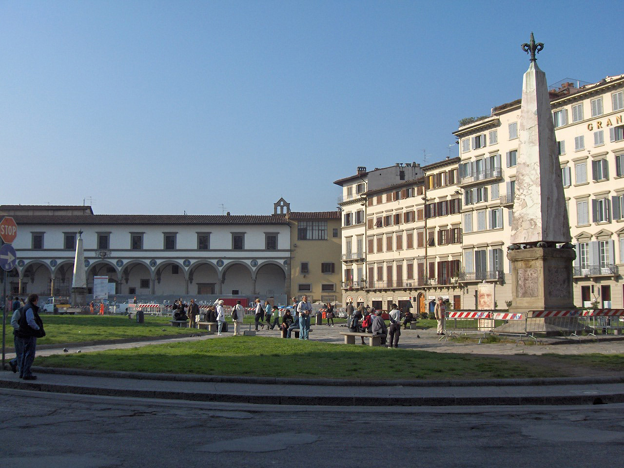 성당 앞 광장은 코시모 1세가 1563년부터 19세기 후반까지 매년 전차 경주(Palio dei Cocchi)를 위해 사용했다. 잠볼로냐(Giambologna)의 청동 거북이 조각상(1608년) 위에 놓인 두 개의 전차 경주 오벨리스크가 경주 시작과 끝을 표시한다.