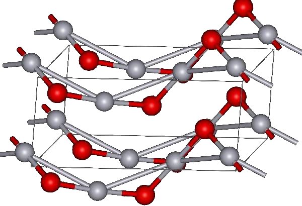 몽트로이타이트 구조 (붉은 원자는 산소)