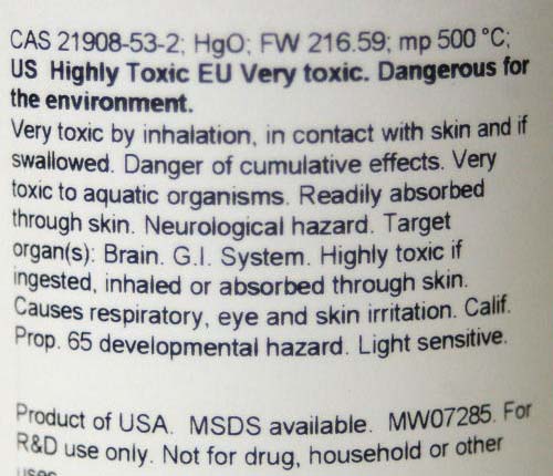 [4] 웹사이트 Safety Data Sheet: Mercury(II) oxide https://www.fishersc[...] Thermo Fisher Scientific 2021-12-25