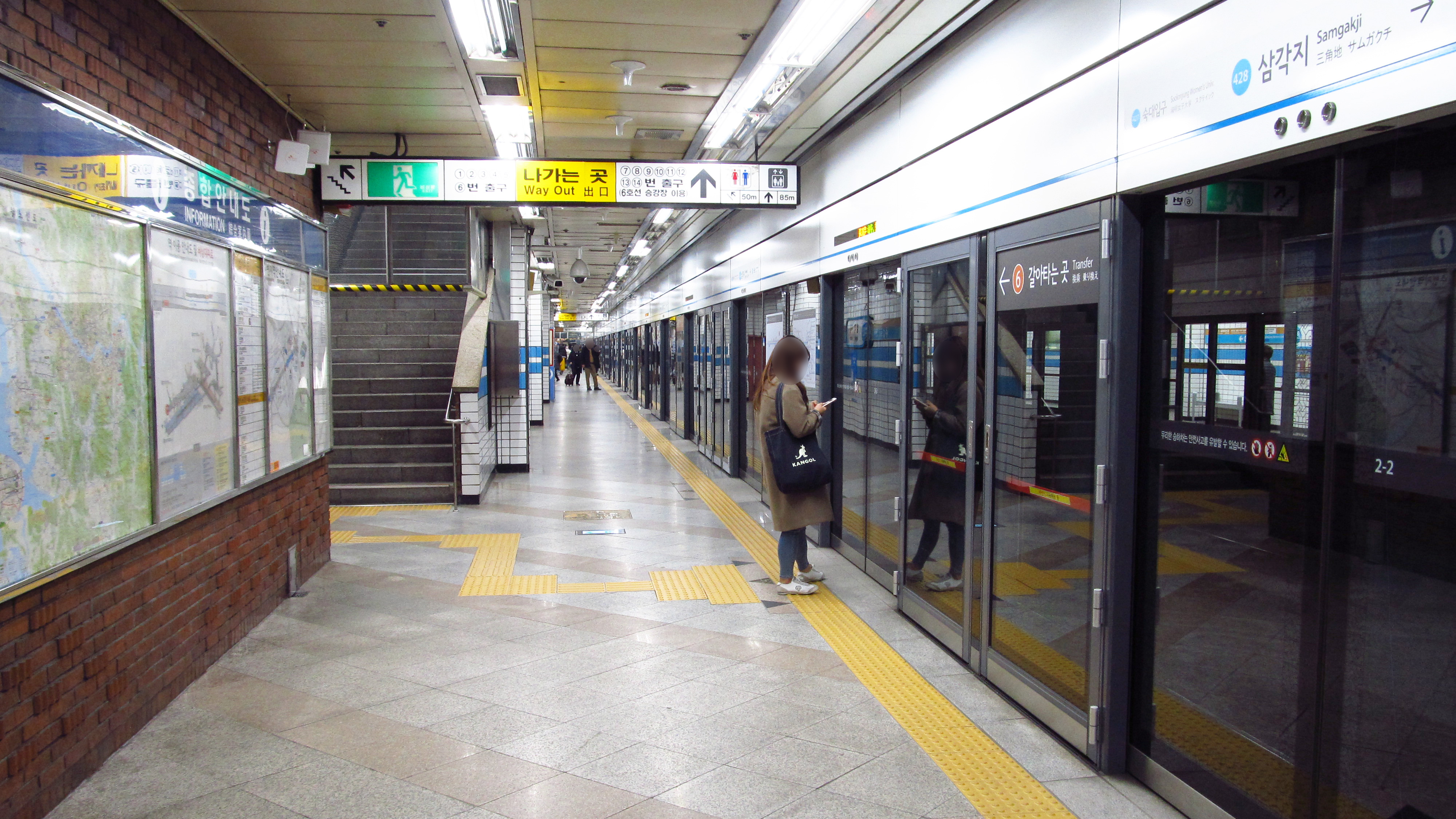 4호선은 2면 2선의 상대식 승강장을 갖추고 있으며, 스크린도어가 설치되어 있다. 환승 통로를 통해 반대편 횡단이 가능하다.[1]