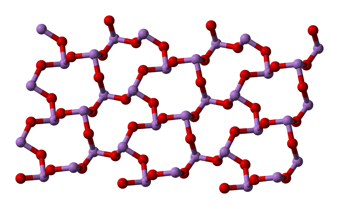 고체 상태에서는 세 가지 형태(다형체)가 알려져 있다.[24] 고온 (> 110 °C)에서는 분자 As₄O₆을 포함하는 입방형 As₄O₆이, 그리고 두 개의 관련 중합체 형태가 존재한다.[24] 이 중합체는 모두 단사정계 결정으로 결정화되며, O 원자를 공유하는 삼각뿔형 AsO₃ 단위의 시트를 특징으로 한다.[25]