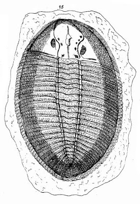 삼엽충은 5000개 이상의 속을 지닌 동물 그룹으로, 형태와 기재(기록하여 서술함)가 매우 복잡하다.[227] 삼엽충은 전반적으로 타원형에 가까우며, 등쪽을 덮는 키틴질의 외골격은 긴 방향으로 세 개의 뚜렷한 엽으로 구분된다. 뚜렷하고 상대적으로 큰 머리부분은 축 부분을 중심으로 가슴과 연결되는데, 가슴에는 가로로 긴 여러 개의 마디들이 있다. 이 마디들 중 가장 뒤쪽에 있는 것은 몸의 끝부분을 덮는 꼬리(pygidium)와 하나로 연결되어 있다.