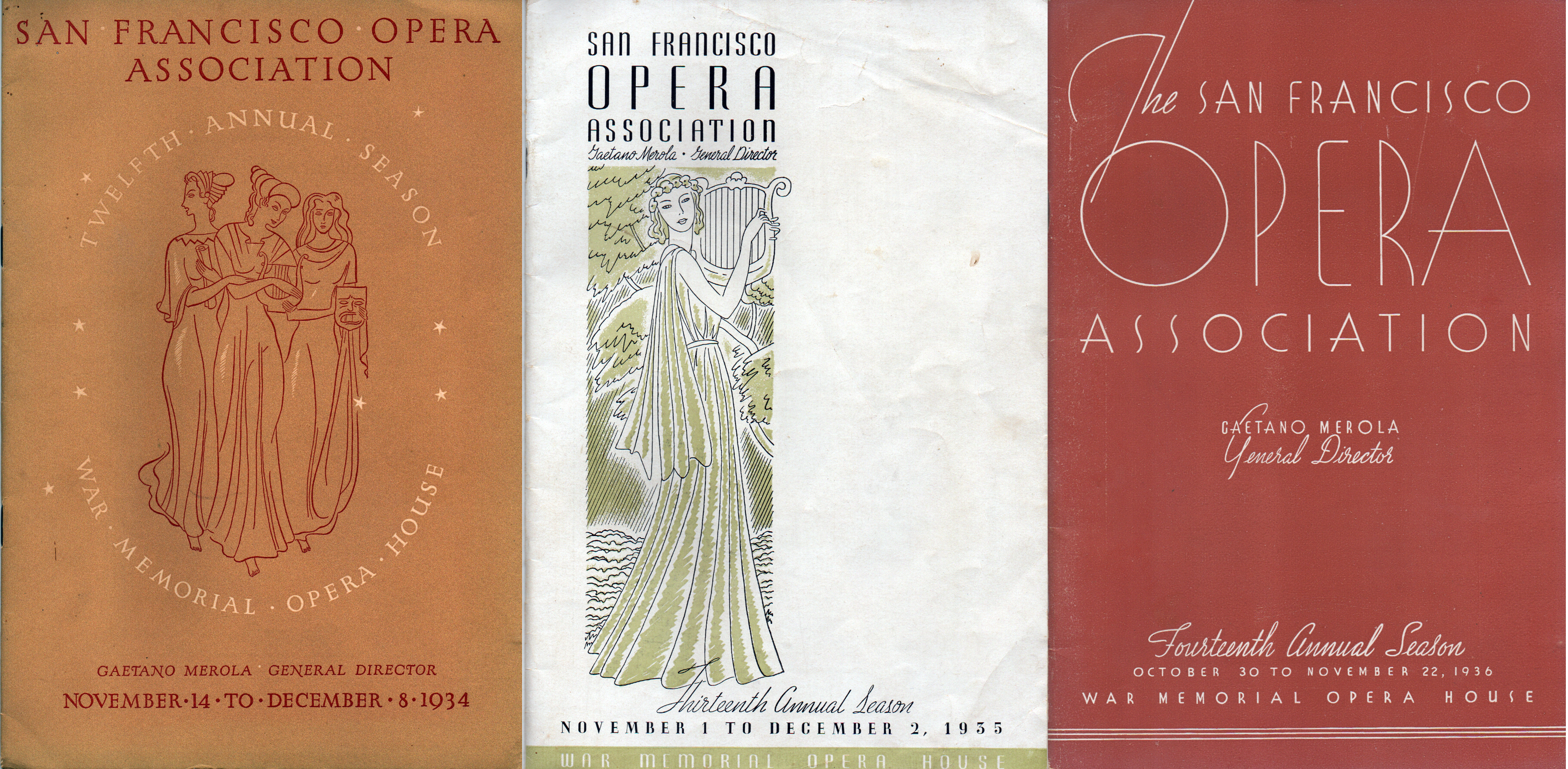 오프닝 시즌 이후 9년 동안, 샌프란시스코 전쟁 기념 오페라 하우스가 아서 브라운 주니어에 의해 설계되었다. 1932년 10월 15일, 오페라단은 새 오페라 하우스 개관을 기념하여 클라우디아 무지오가 주연을 맡은 ''토스카''를 공연했다.[36] 메롤라 시대에는 세계적인 가수들이 샌프란시스코를 정기적으로 찾아, 짧은 시즌과 전국을 가로지르는 긴 이동 시간을 고려하여 여러 역할을 종종 수행했다.[4][37]