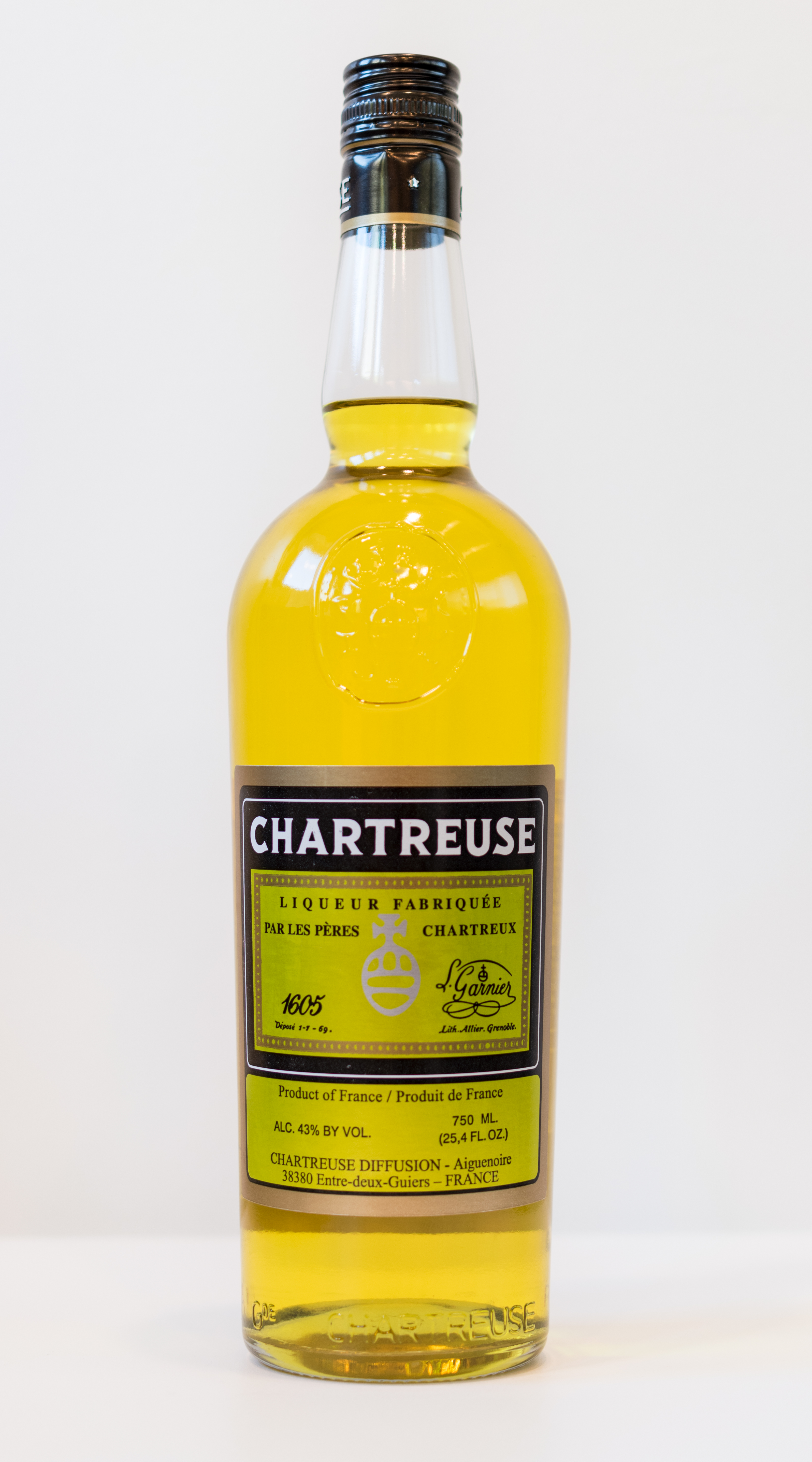 그린 샤르트뢰즈(110 프루프 또는 55% ABV)는 130가지 허브와 기타 식물을 알코올에 침전시킨 후 약 8시간 동안 침출하여 만든 천연 녹색 리큐어이다. 마지막 식물 침전을 통해 리큐어에 색상이 부여된다.[6] 이 리큐어의 첫 번째 버전은 1825년에 개발되었으며, 현대 버전은 1840년에 처음 출시되었다.[15] 옐로 샤르트뢰즈(86 프루프 또는 43%[16])는 그린 샤르트뢰즈보다 맛과 향이 더 순하고 달콤하며, 알코올 도수가 낮다.[6][15]샤르트뢰즈는 크게 베르(녹색)와 조느(노란색) 두 종류로 나뉜다. 베르는 스파이시하고 허브 향이 풍부하며, 조느는 꿀의 단맛이 강하고 부드러운 맛이다. 알코올 도수는 베르가 55도, 조느가 40도이다. 베르 VEP와 조느 VEP는 각각을 큰 오크통에서 12년 이상 숙성시킨 고급품으로, 알코올 도수는 베르가 54도, 조느가 42도이다.