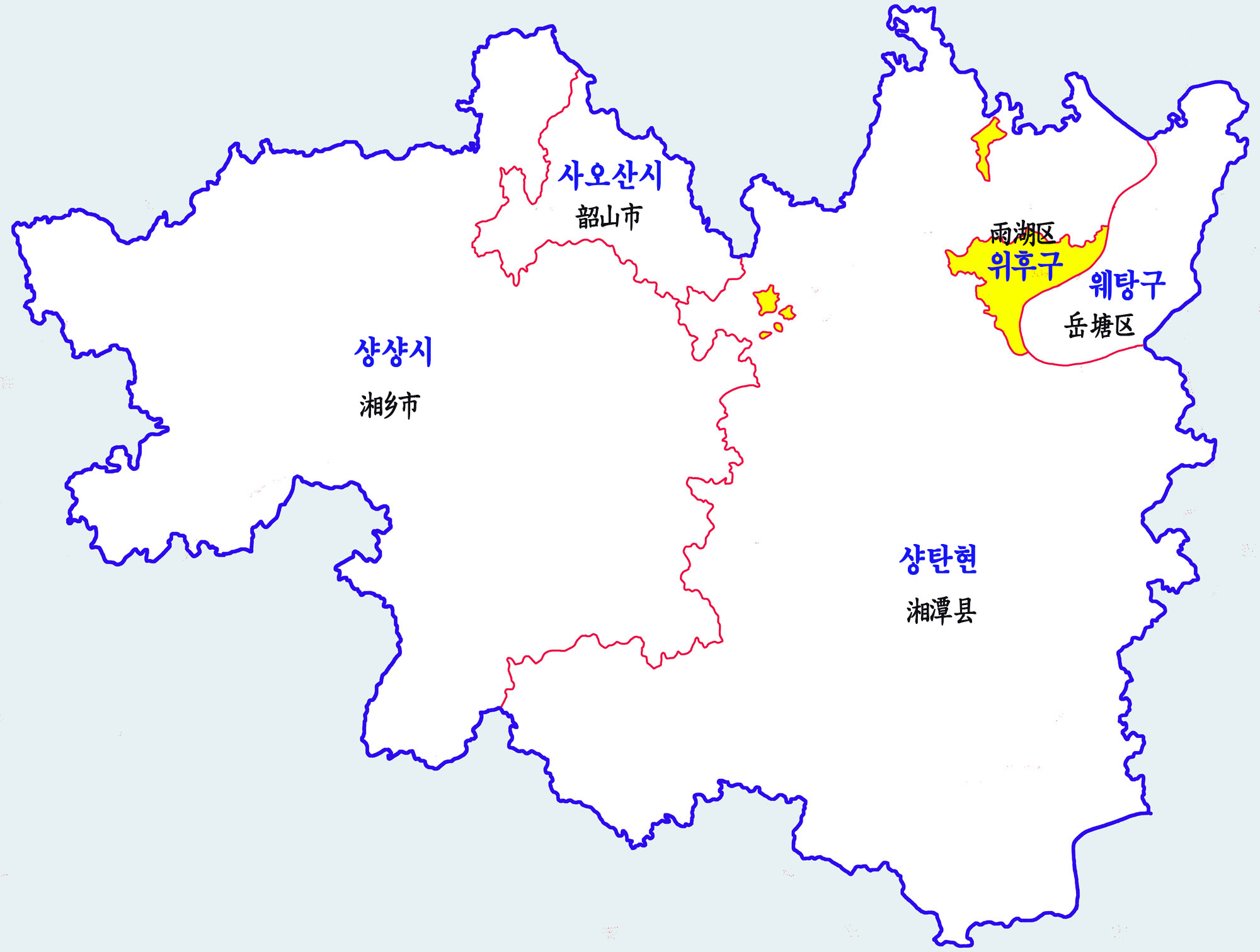 위후 구 | 雨湖区 | Yǔhú Qū | 457,955 | 451.39km2 |