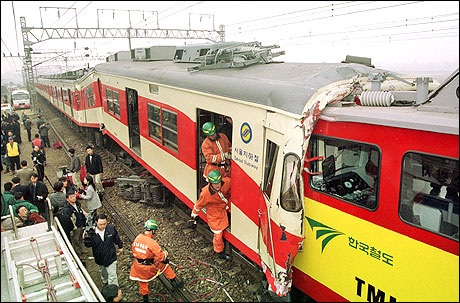 2002년 2월 22일 오전 10시 30분경, 경부선 수원역 구내에서 대한민국 철도청(현 한국철도공사) 소속 모터카가 신호 대기 중이던 107편성(현 111편성)[11] 전동차와 추돌하는 사고가 발생했다. 이 사고로 선두차 1014호가 크게 파손되었고, 인접한 5량의 객차도 심한 손상을 입었다.[17] 사고 원인은 짙은 안개 속에서 모터카 기관사가 신호를 무시하고 전방을 제대로 살피지 않았기 때문이었다.[17]