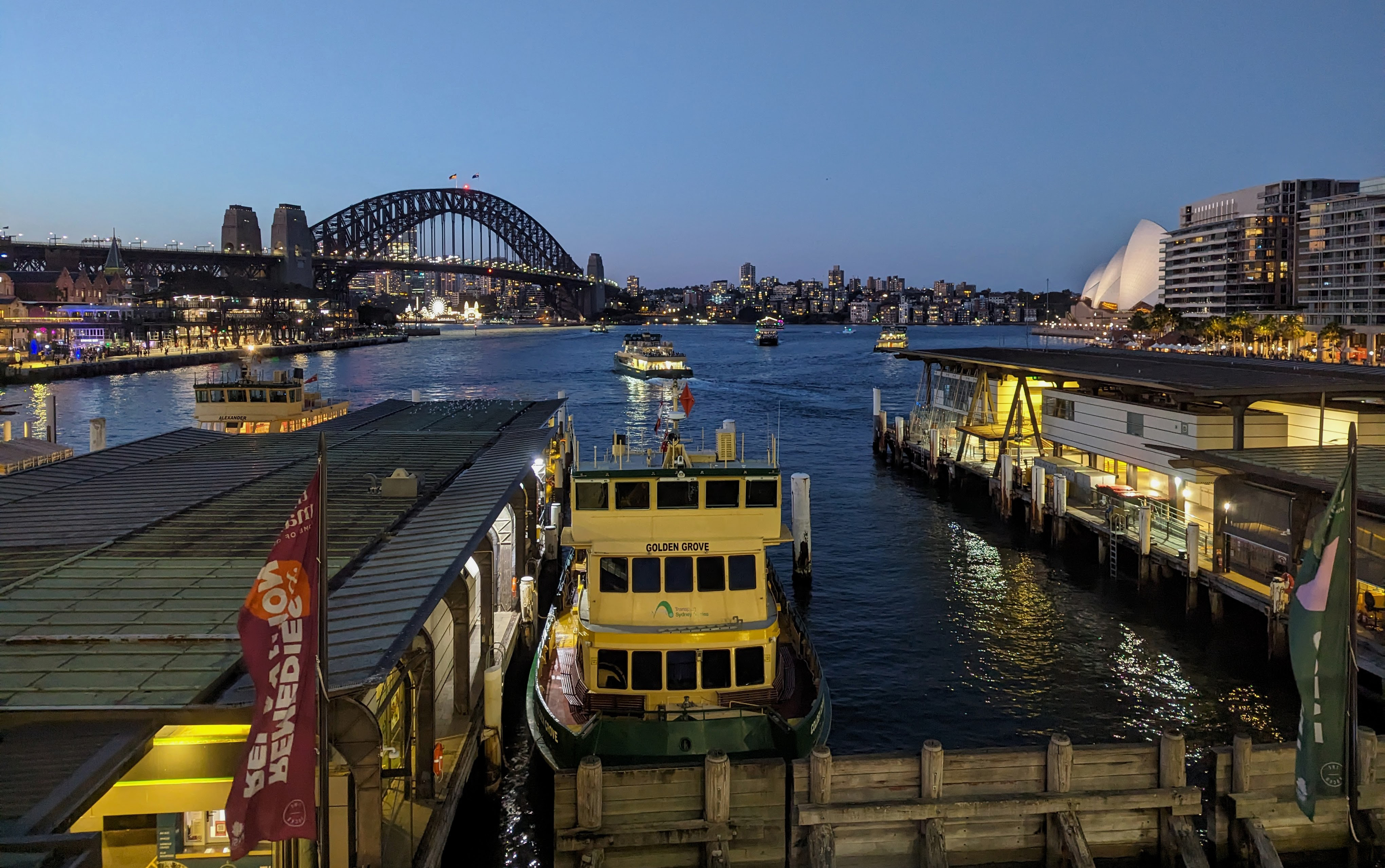 서큘러 키에는 5개의 부두가 있으며, 달링 하버, 모스만, 왓슨스 베이, 맨리, 뉴트럴 베이, 타롱가 동물원, 파라마타 강으로 가는 페리가 운항되고 있다.[27]