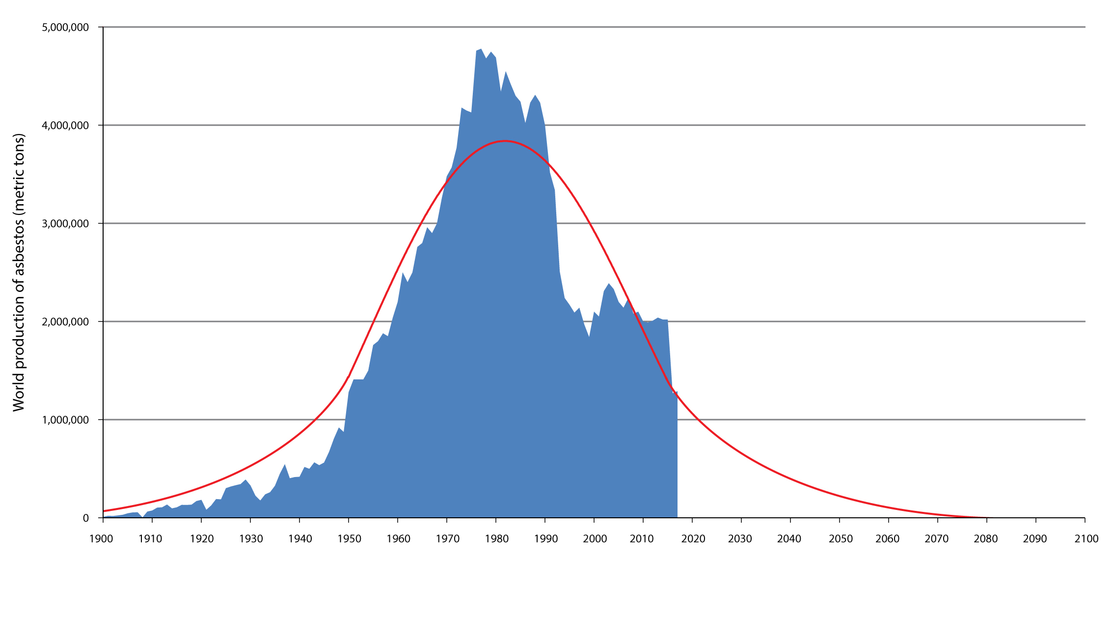 현대에는 1975년 세계 석면 생산량이 520만 톤으로 최고조에 달했다. 주요 산출국은 러시아와 캐나다였다.[191] 그러나 석면의 위험성이 인지되면서, 현재 66개국에서 석면 사용이 완전히 금지되었고, 많은 국가에서 엄격하게 규제되고 있다.[19][20]