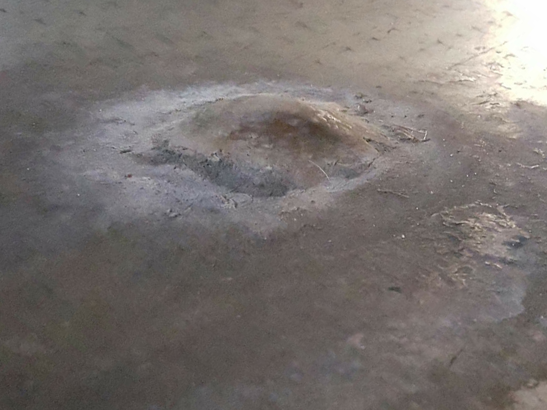 콘크리트에서 파생된 2차 퇴적물은 콘크리트 열화의 결과로, 칼슘 이온이 용액 상태로 콘크리트에서 침출되어 콘크리트 구조물의 밑면에 재퇴적되어 종유석과 석순을 형성한다.[10] 탄산 칼슘이 석순으로 침전되는 것은 용액이 칼슘이 풍부한 침출 용액을 콘크리트 구조물 아래의 땅으로 운반할 때 발생한다. 이산화탄소는 알칼리성 침출 용액에 흡수되어[11] 탄산 칼슘을 석순으로 침전시키는 화학 반응을 촉진한다.[12] 이러한 석순은 높이가 몇 센티미터를 넘는 경우가 드물다.[13]
