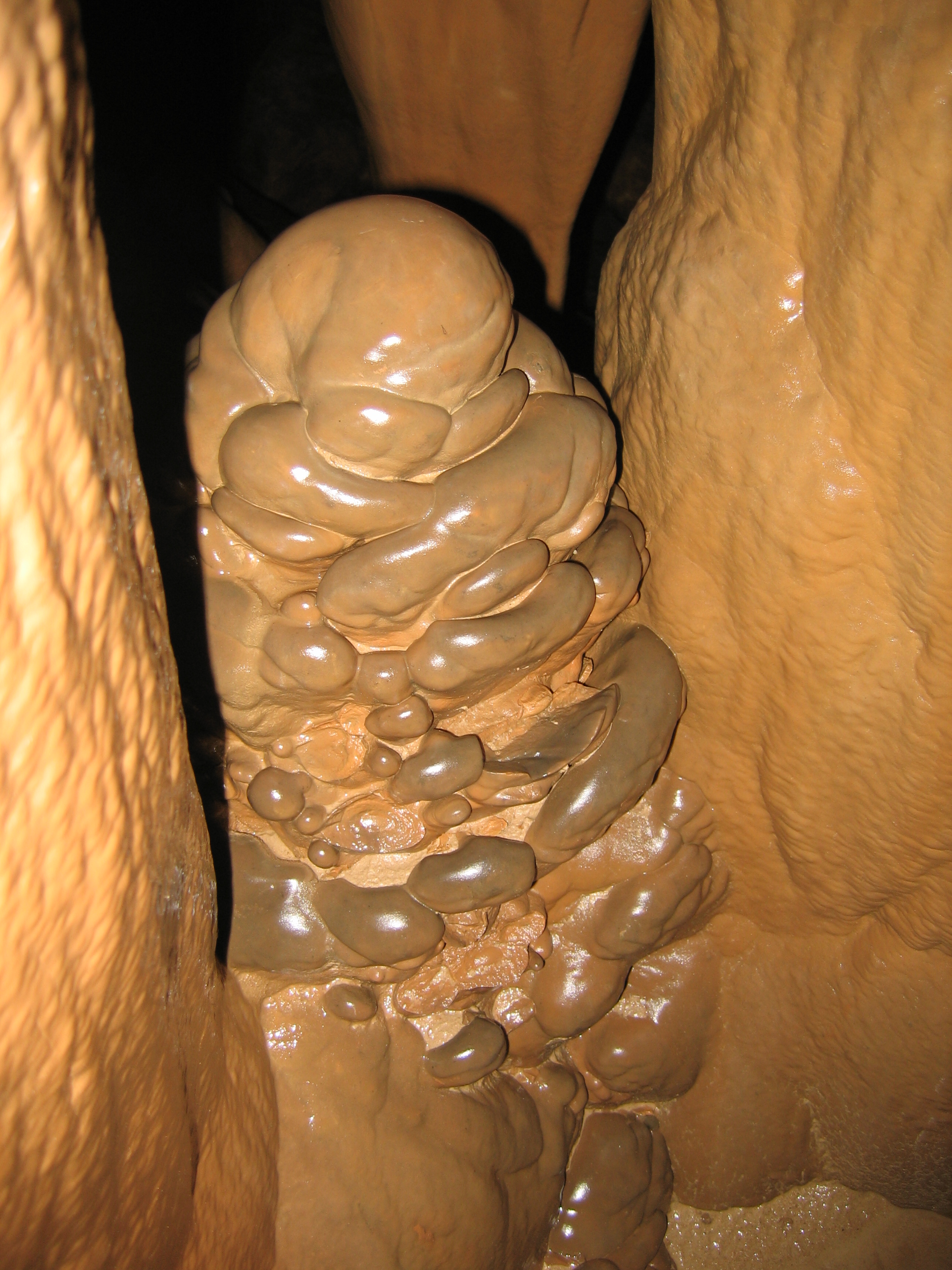 종유석이 아래로 자라고, 석순은 위로 자라면서 서로 만나게 되면 석주를 형성한다. 석순을 만지면 피부의 기름이 표면 장력을 변화시켜 성장에 영향을 줄 수 있고, 먼지로 인해 얼룩이 생길 수 있으므로 만지지 않는 것이 좋다.