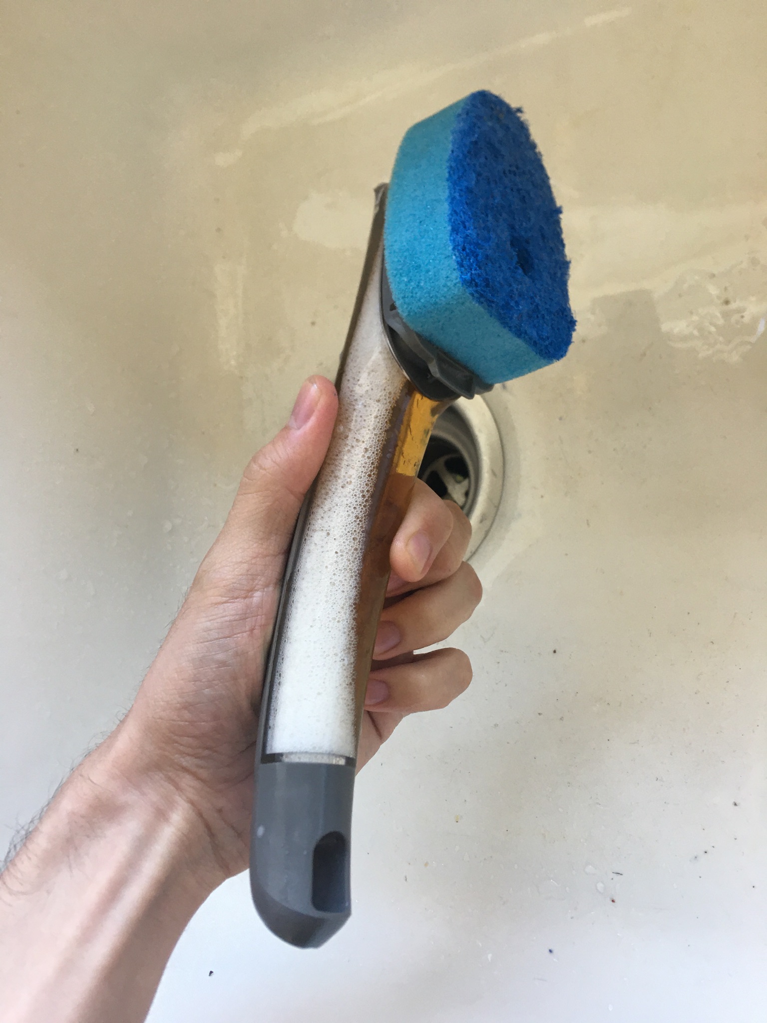 자동 식기 세척기를 사용하지 않을 경우, 사람이 직접 손으로 식기를 세척하는 방식이다. 일반적으로 다양한 종류의 세제와 수세미, 스펀지, 솔 등의 도구를 사용하여 식기의 오염물을 제거한다. 피부 보호나 위생을 위해 고무 장갑을 착용하기도 하며, 세척 시 사용하는 물의 온도나 상태(흐르는 물 또는 고인 물)는 개인의 선호에 따라 다르다.2. 1. 1. 수동 세척 도구