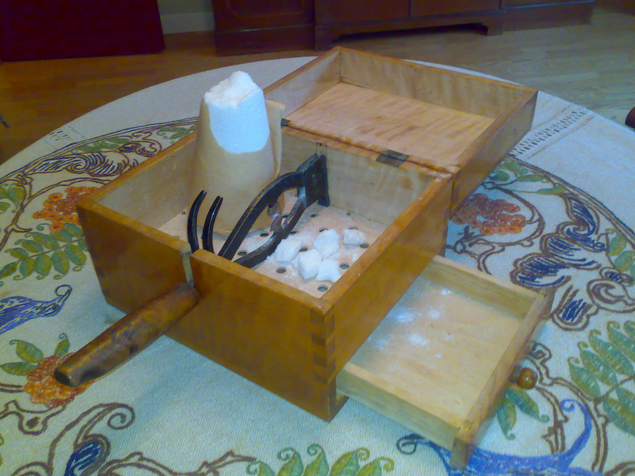 |thumb| 스웨덴의 덩어리 설탕 상자. 철제 설탕 절단기가 있으며, 작은 조각이 바닥의 서랍으로 떨어지도록 되어 있다.]]
