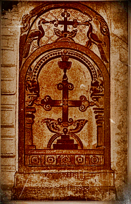 현지 문화에 근거한 해석에 따르면, 예수의 형상이 없고 꽃 모양의 팔이 있는 십자가는 "기쁨"을 상징하며, 성 바울의 부활 신학을 가리킨다. 꼭대기에 있는 아래를 향한 새(아마도 비둘기)는 예수 그리스도의 부활에서 성령의 역할을 나타낸다. 십자가는 그리스도를, 연꽃은 아들을 낳은 하느님 아버지를 상징한다. 세 개의 계단은 갈보리를 나타내며 십자가에서 흘러나오는 은혜의 통로인 교회를 상징한다. 연꽃은 또한 불교와의 문화적 연관성을 상징할 수 있으며, 그 위에 있는 십자가는 기독교가 부처의 땅에 세워졌음을 보여준다.[144][145]