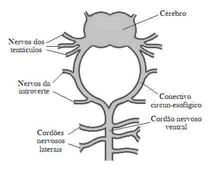 신경계는 등쪽 뇌 신경절(dorsal cerebral ganglion), 식도 위에 위치한 뇌, 그리고 뇌를 몸통 전체를 따라 뻗어 있는 단일 복측 신경삭과 연결하는 식도 주위 신경환으로 구성된다.[11] 측면 신경은 이 신경삭에서 갈라져 나와 몸 벽의 근육에 분포한다.[11]