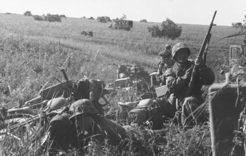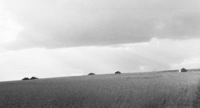 >정오 무렵, 먼지가 짙은 구름을 일으키며 길가의 덤불, 곡물밭, 전차, 트럭 위에 겹겹이 내려앉았다. 어두운 붉은 태양 원반은 거의 보이지 않았다. 전차, 자주포, 포병 트랙터, 장갑차 및 트럭이 끊임없이 흘러 들어왔다. 병사들의 얼굴은 먼지와 배기가스 연기로 어두웠다. 참을 수 없을 정도로 더웠다. 병사들은 갈증에 시달리고 땀에 젖은 셔츠가 몸에 들러붙었다.
