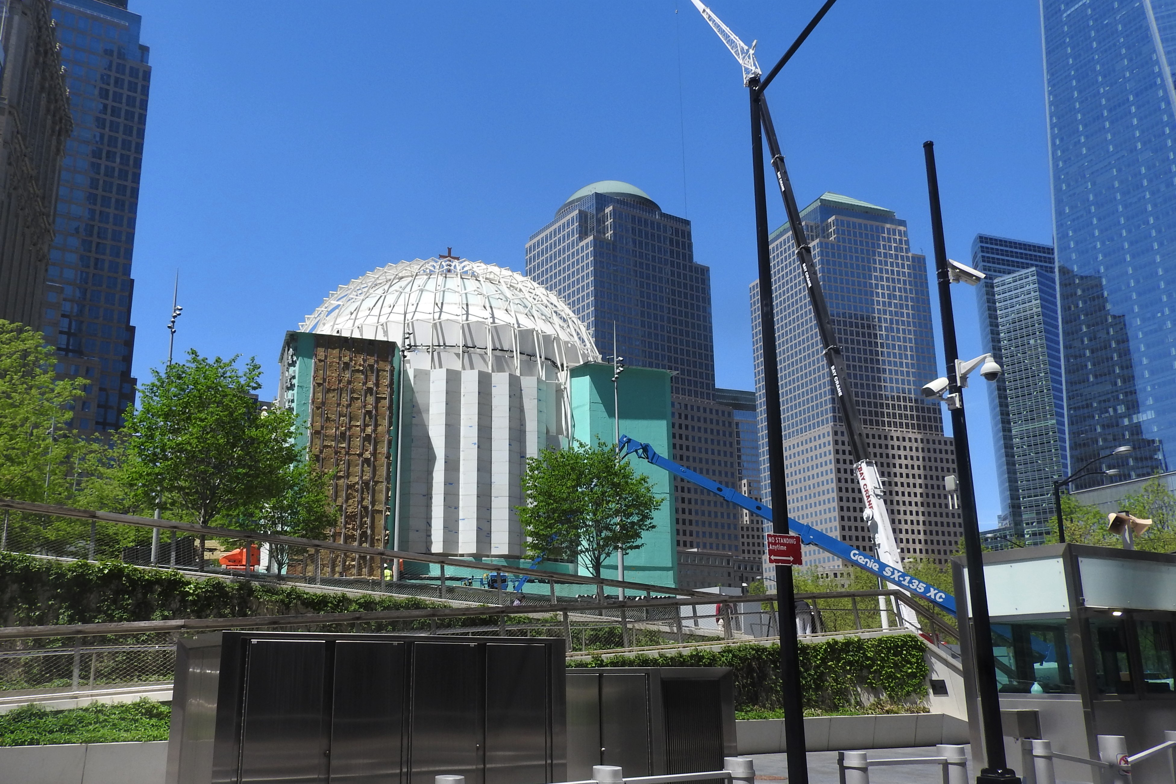 2017년 12월, 산티아고 칼라트라바가 설계한 성소를 재건축하는 건설 회사인 스칸스카(Skanska) 는 리버티 공원 현장에서 공사를 중단했다. 미국 그리스 정교회 대교구는 성소 기부금으로 3,700만 달러를 받았음에도 불구하고 스칸스카의 청구서를 지불할 수 없었다.[63] 공사 중단 이후, 맨해튼의 미국 검찰청과 주 검찰청은 이 프로젝트의 재정과 미국 그리스 정교회 대교구의 재정에 대한 조사를 시작했다.[65]