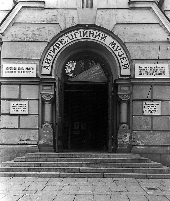 1920년대에 소련은 대성당을 폐쇄하고 무신론 박물관으로 개조했지만, 제2차 세계 대전 이후에 다시 대성당으로 사용되었다. 대성당은 1920년 폴란드-소비에트 전쟁 중에 피해를 입을 위험이 있었다. 소련 시대에 대성당은 철거 위기를 간신히 넘겼다. 전쟁 전까지는 종교 및 무신론 박물관으로 사용되었다. 3세기의 순교자인 성 바르바라의 유물은 볼셰비키에 의해 파괴되기 전에 성 미카엘 황금 돔 수도원에서 성 볼로디미르 대성당으로 옮겨져 그 이후로 그곳에 보존되어 있다.전쟁 후 대성당은 재개장되었고 그 이후로 계속 열려 있다. 그 당시에는 우크라이나 엑사르하트의 키예프 주교 관구의 주요 교회였다. 대성당은 소련에서 관광객들이 정교회를 공개적으로 방문할 수 있는 몇 안 되는 장소 중 하나였다. 1988년 루스 세례 천년 기념 행사가 소련의 종교 정책에 변화를 가져오면서 정교회의 부흥을 보았다.