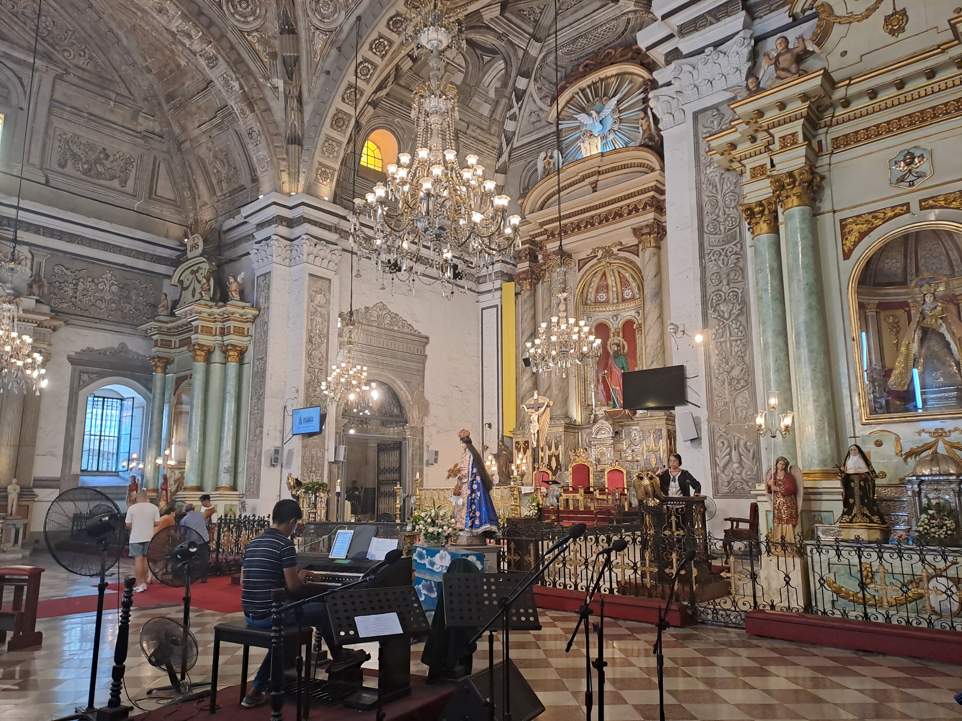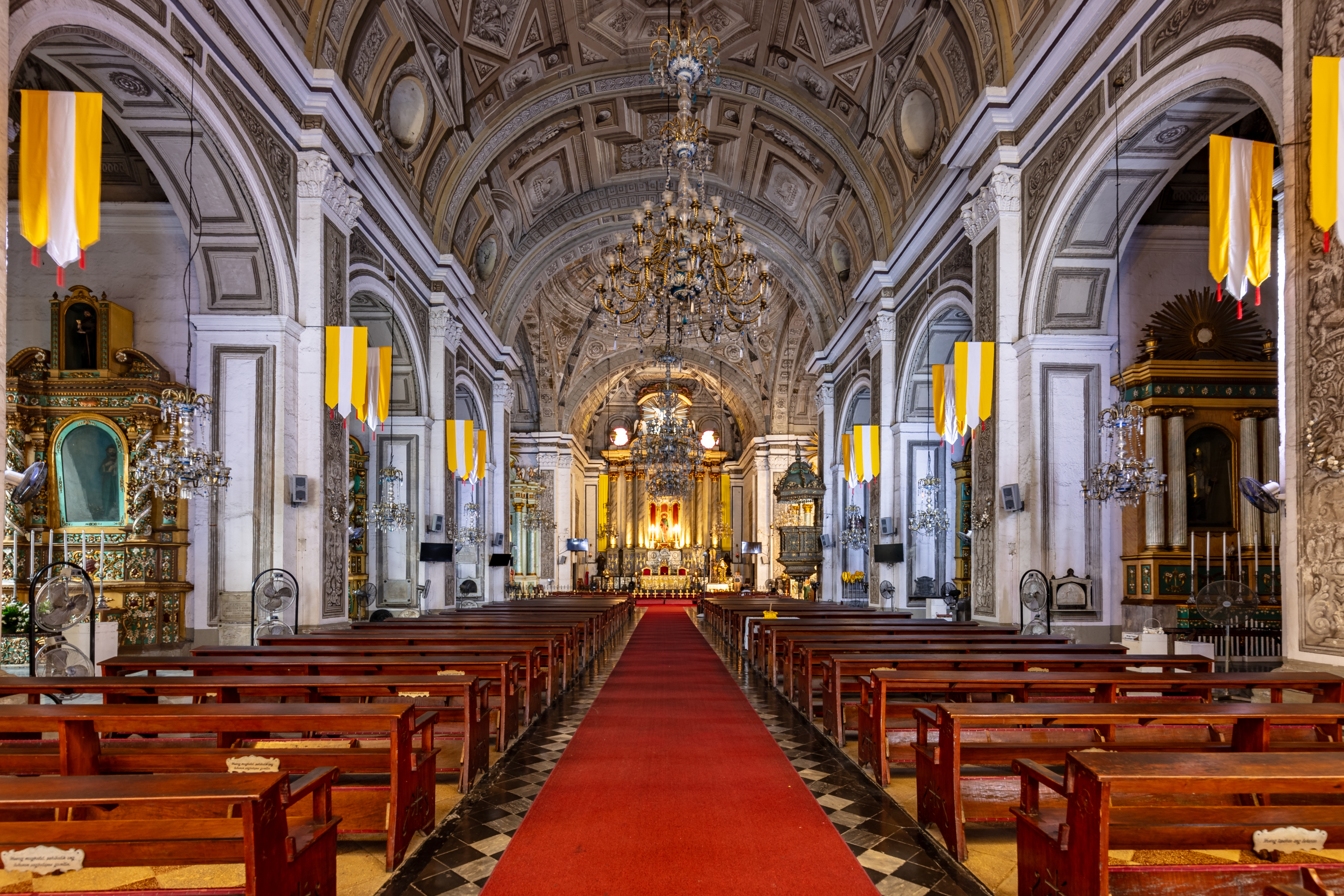 성당 내부는 대칭성과 화려함이 돋보이며, 두 명의 이탈리아인이 트롱프뢰유 기법으로 제작하였다. 몰딩, 로제트, 삼차원 조각처럼 보이는 움푹 들어간 패널, 필리핀 파인애플을 모티프로 사용한 바로크 양식의 설교단, 웅장한 파이프 오르간, 16세기 십자가가 있는 전례실, 17세기에 조각된 상아 상감이 있는 몰라베로 조각된 성가대석, 파리에서 제작된 16개의 거대한 샹들리에 등이 있다.