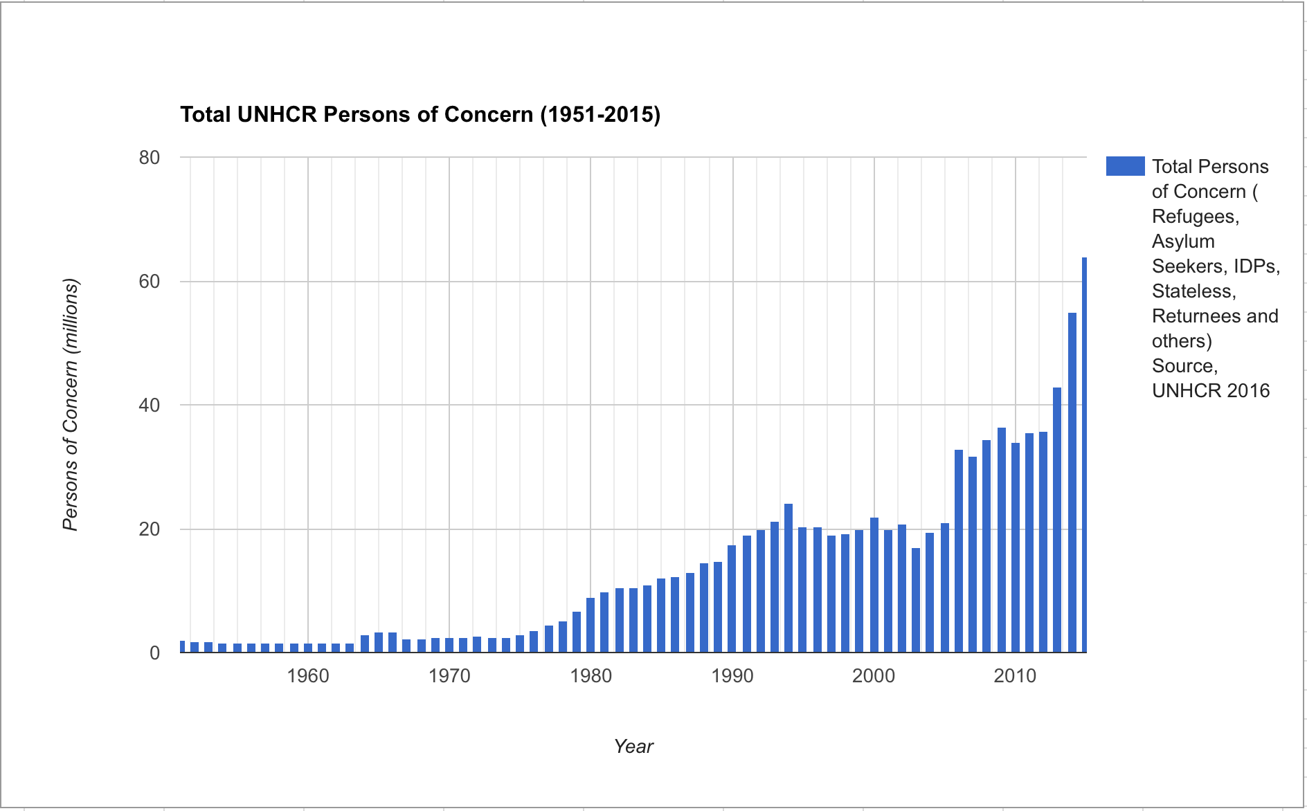 1967년, 유엔은 1967년 난민 의정서를 통해 1951년 난민의 지위에 관한 협약에서 제2차 세계 대전으로 인해 고향을 떠나야 했던 개인으로 정의한 난민의 범위를 확대했다. 이 의정서는 난민 정의에서 시간적 제한과 지리적 정의를 제거했다.[12]