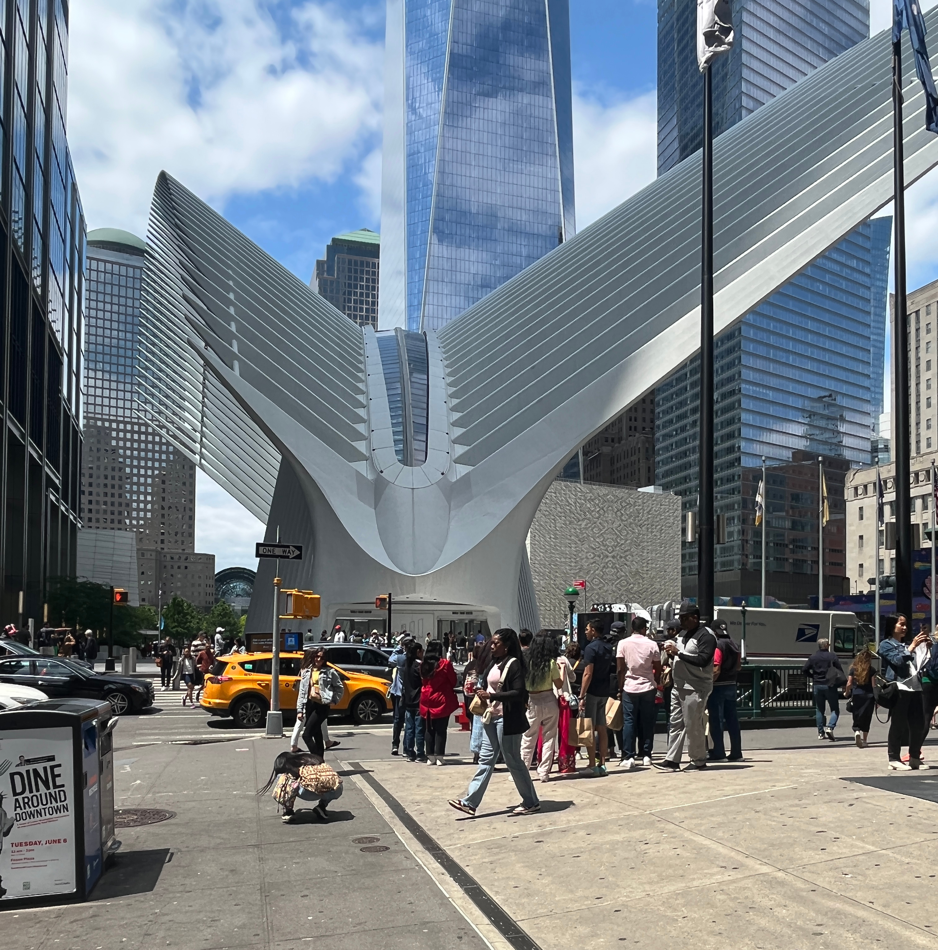 세계 무역 센터 교통 허브는 PATH, 뉴욕 지하철, 페리 등 다양한 교통 수단을 연결하는 복합 환승 센터이다.[157] 산티아고 칼라트라바가 설계한 이 허브는 이전 세계 무역 센터역을 대체한다.