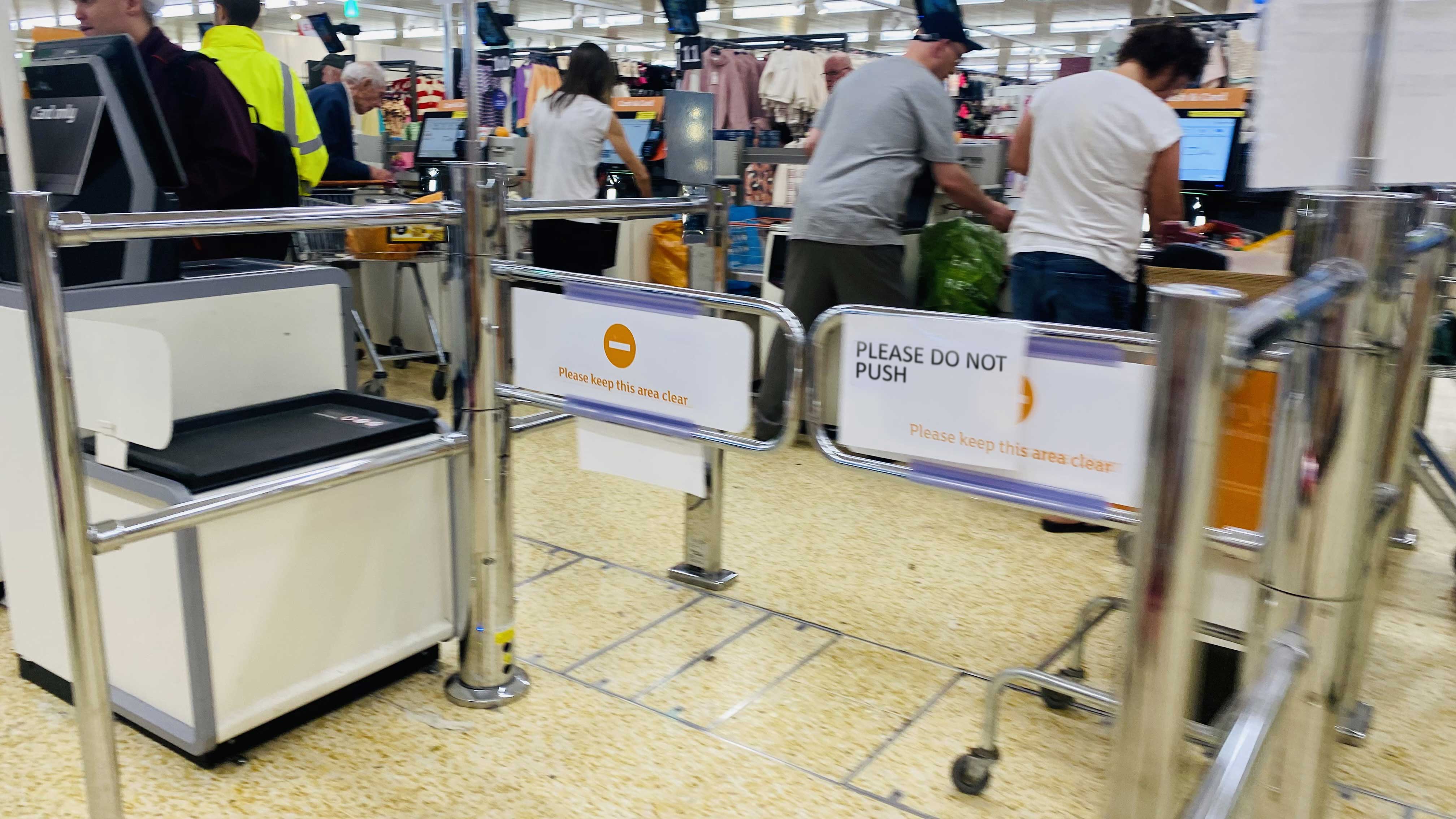 일부 세인즈버리스 매장의 고객들은 영수증을 스캔해야 차단된 구역을 나갈 수 있다.