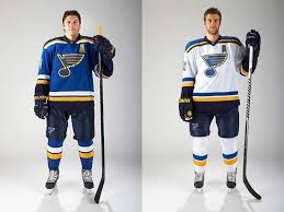 세인트루이스 블루스는 1967년 창단 이후 "블루 노트" 문장과 금색 액센트를 사용한 파란색과 흰색 유니폼을 착용해왔다. 1967년부터 1984년까지는 밝은 파란색 바탕에 어깨 부분과 줄무늬에 대비되는 색상을 사용했다. 1979년까지 파란색 유니폼에는 어깨 부분에 대비되는 색상이 없었다.[34]1984년, 블루스는 빨간색을 추가하고 파란색을 더 어둡게 변경했다. 초기에는 유니폼 앞면 문장 위에 팀 이름이 있었지만 1987년에 제거되었고, 어깨 부분의 대비되는 색상도 사라졌다.[34]