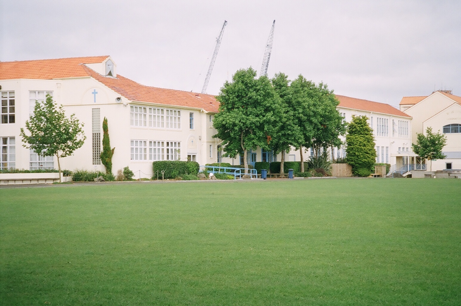 개교 후 몇 년 동안, 부지 변모, 리브스 로드 개발, 운동장 조성, 석조 벽 건설 등이 진행되었다.[52] 특히, 테니스 코트 아래의 거대한 석조 옹벽은 학생들에게 큰 인상을 남겼다.[52] 제2차 세계 대전 종전 후, 1953년 칼리지 예배당 개관,[48][56] 조립식 교실 건설, 방갈로를 개조한 도서관 설립 등[48][56] 학교 시설 확충이 이루어졌다. 1961년에는 834명의 학생으로 뉴질랜드 최대 가톨릭 학교가 되었다.[57]
