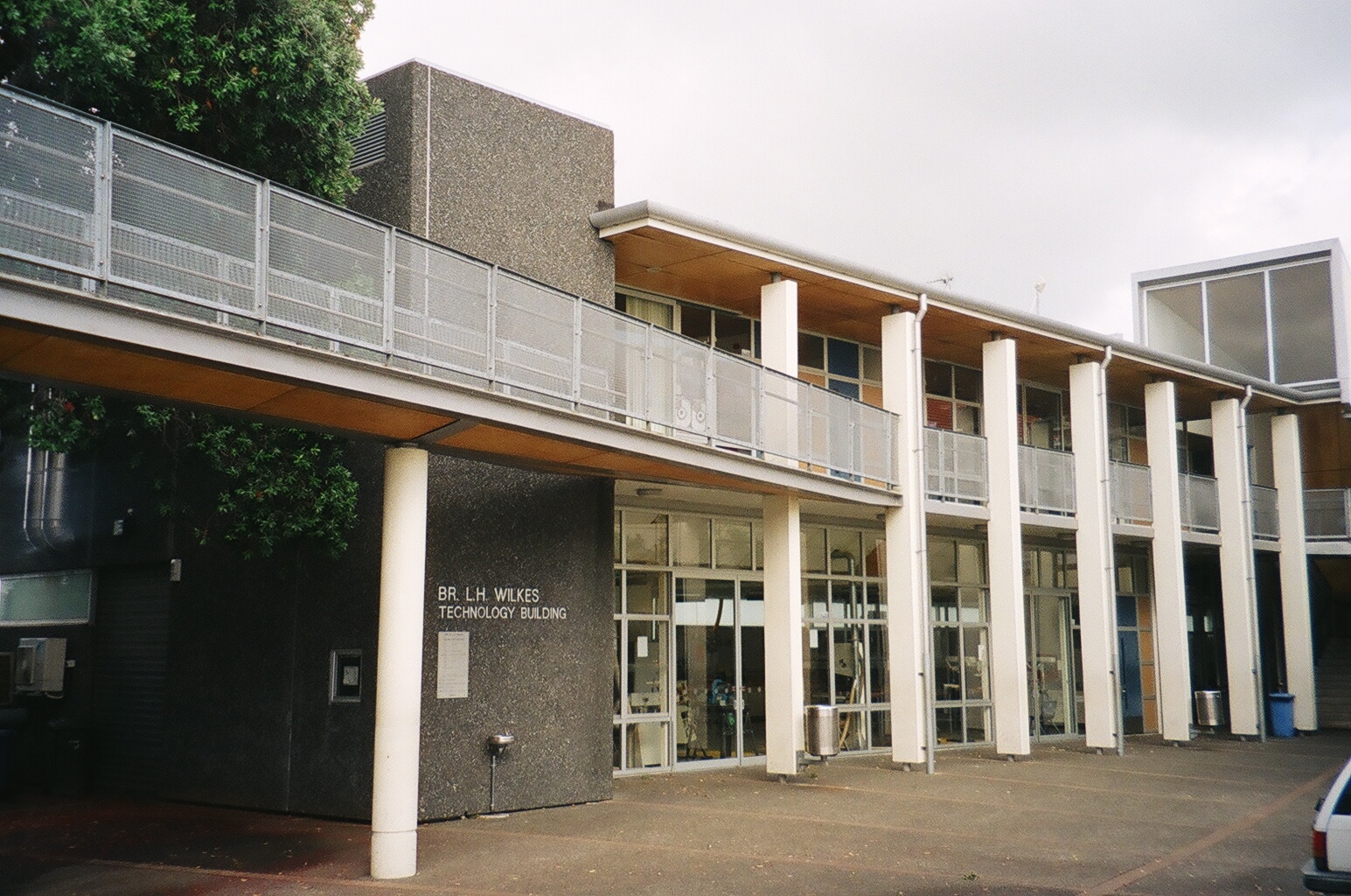 아웃웨이트 부지에 1939년에 개교한 최초의 학교 건물은 2층 교실 블록(현재 브로 P. 오드리스콜 빌딩)과 2층 주거지(형제단 거주지)로 구성되었으며, 윌리엄 헨리 검머가 설계했다.[51] 이 건물들은 1944년에 완공되었다.[52] 1955년에는 크리스천 형제단 동창회에서 비용을 지불한 복되신 동정 마리아상이 브로 P. 오드리스콜 빌딩의 사각 정원 위에 설치되었다.[53]