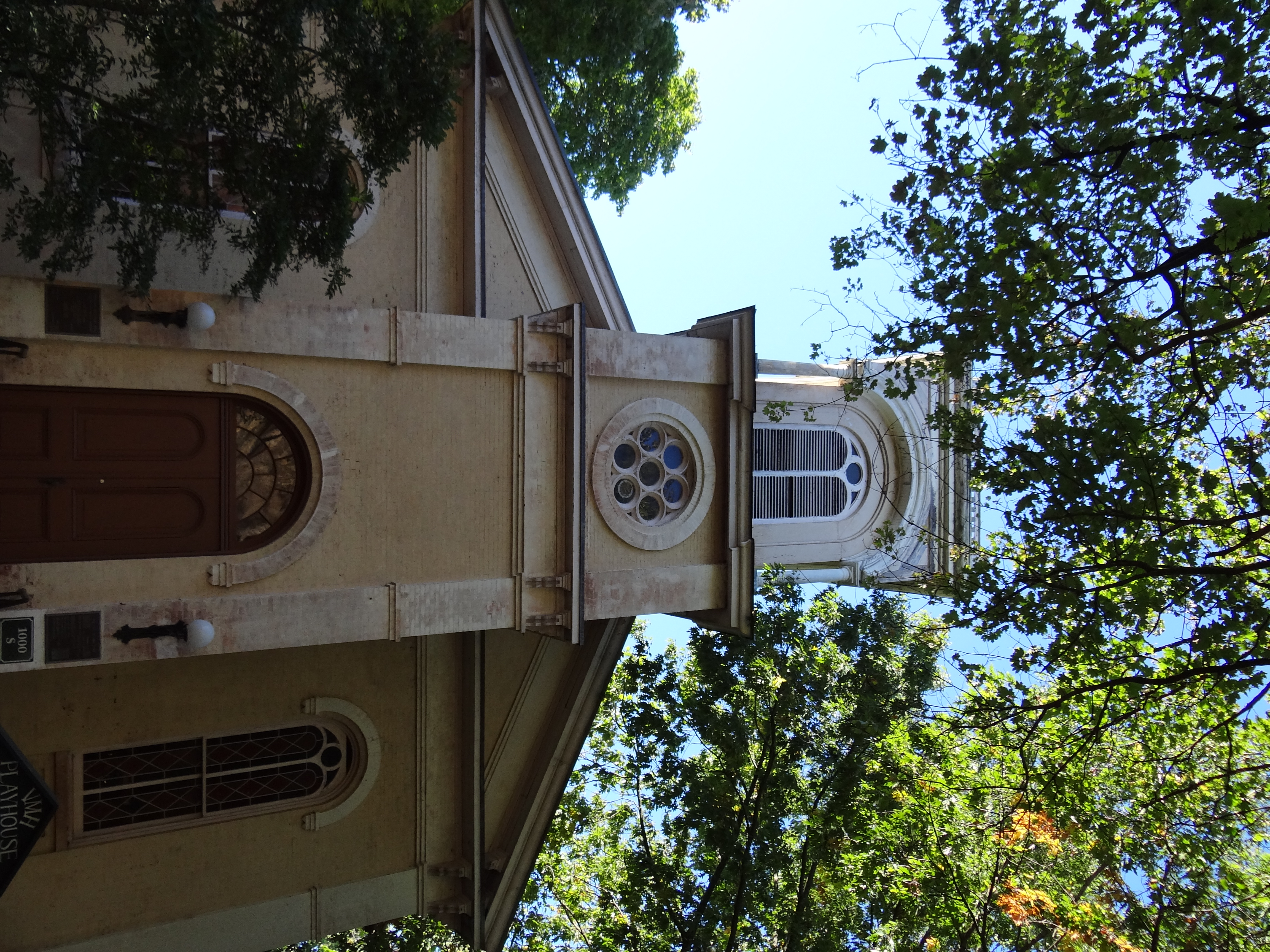 건축 당시, 정문은 전면에 있는 중앙 둥근 아치를 통해 들어갔으며, 그 위에는 도리아식 필라스터로 둘러싸인 페디먼트가 있었다. 둥근 아치형 창문과 상인방이 정문의 양쪽을 에워쌌고, 각 모서리에는 전 높이의 필라스터가 있었다.[38] 1873년의 한 관찰자는 예배당을 "어떤 돔이나 종루도 없는 단순하지만 멋진 벽돌 건물"이라고 말했다.[40] 그 해에 벽은 패널과 필라스터를 닮은 장식 요소로 다시 칠해졌다.[38] 예배당의 종탑과 스테인드 글라스는 1883년에 만들어졌다. 예배당은 1893년에 이전 부지에서 옮겨졌다.[38] 재향군인 기념관은 2014년에 손상되었으며, 이 건물은 현재 일반에 공개되지 않고 있다.[41]