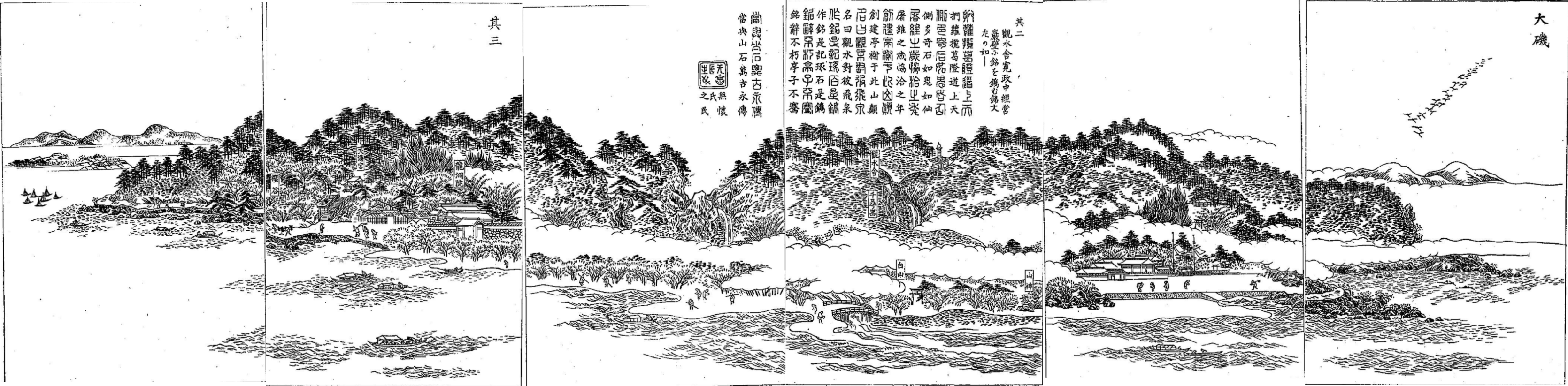 사쓰마 번이 에도 시대 후기에 편찬한 지지(地誌) 『삼국명승도회』에는 센간엔 주변을 가리키는 오이소가 삽화와 함께 수록되어 있으며, 센간엔에 대해서도 다음과 같이 기술되어 있다.
