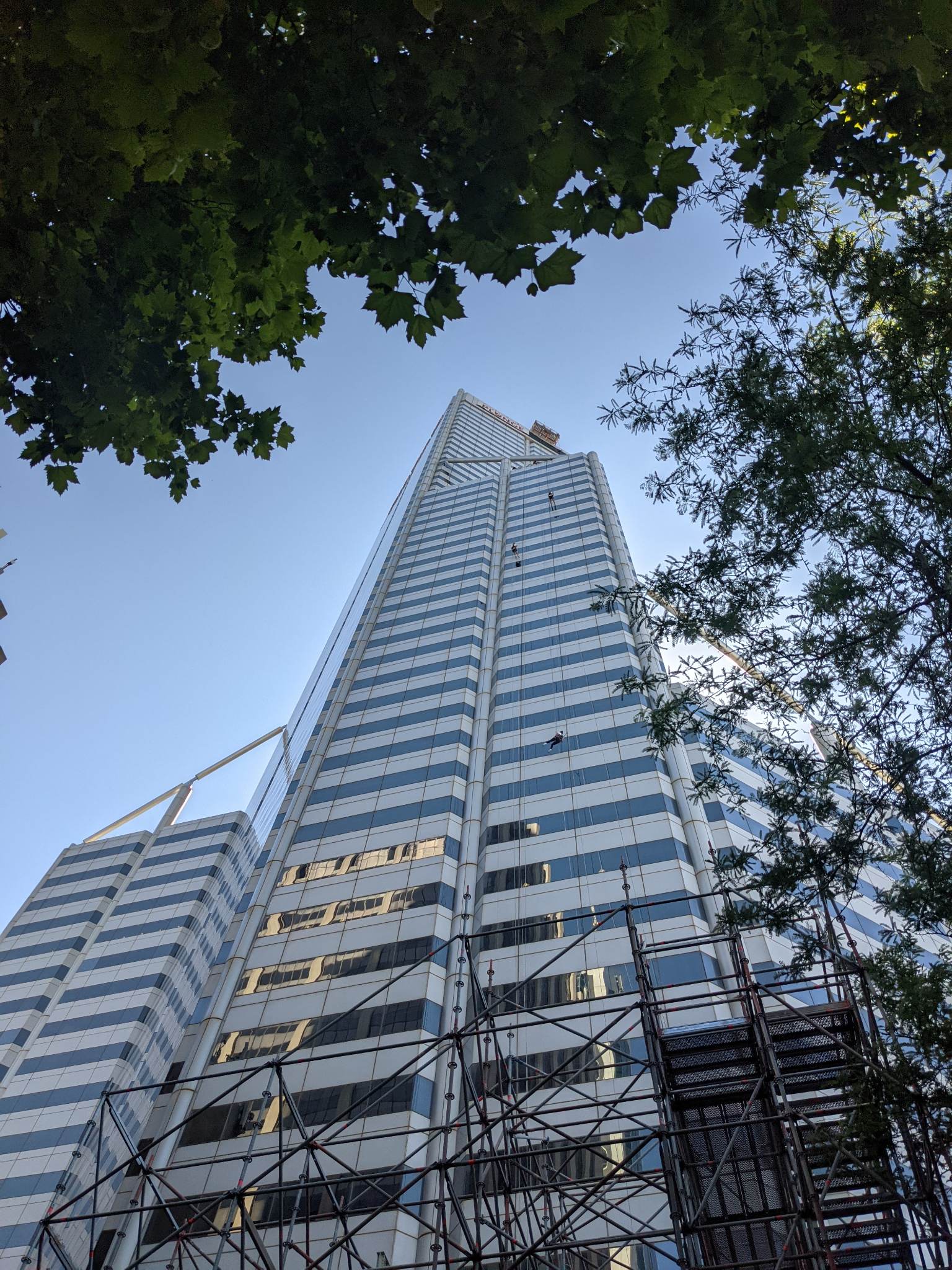 건물에는 5,000장의 유리가 있으며, 1년에 두 번 청소된다.[26] 강풍 때문에 창문 청소 한 바퀴를 완료하는 데 최대 3개월이 걸릴 수 있다.[26]