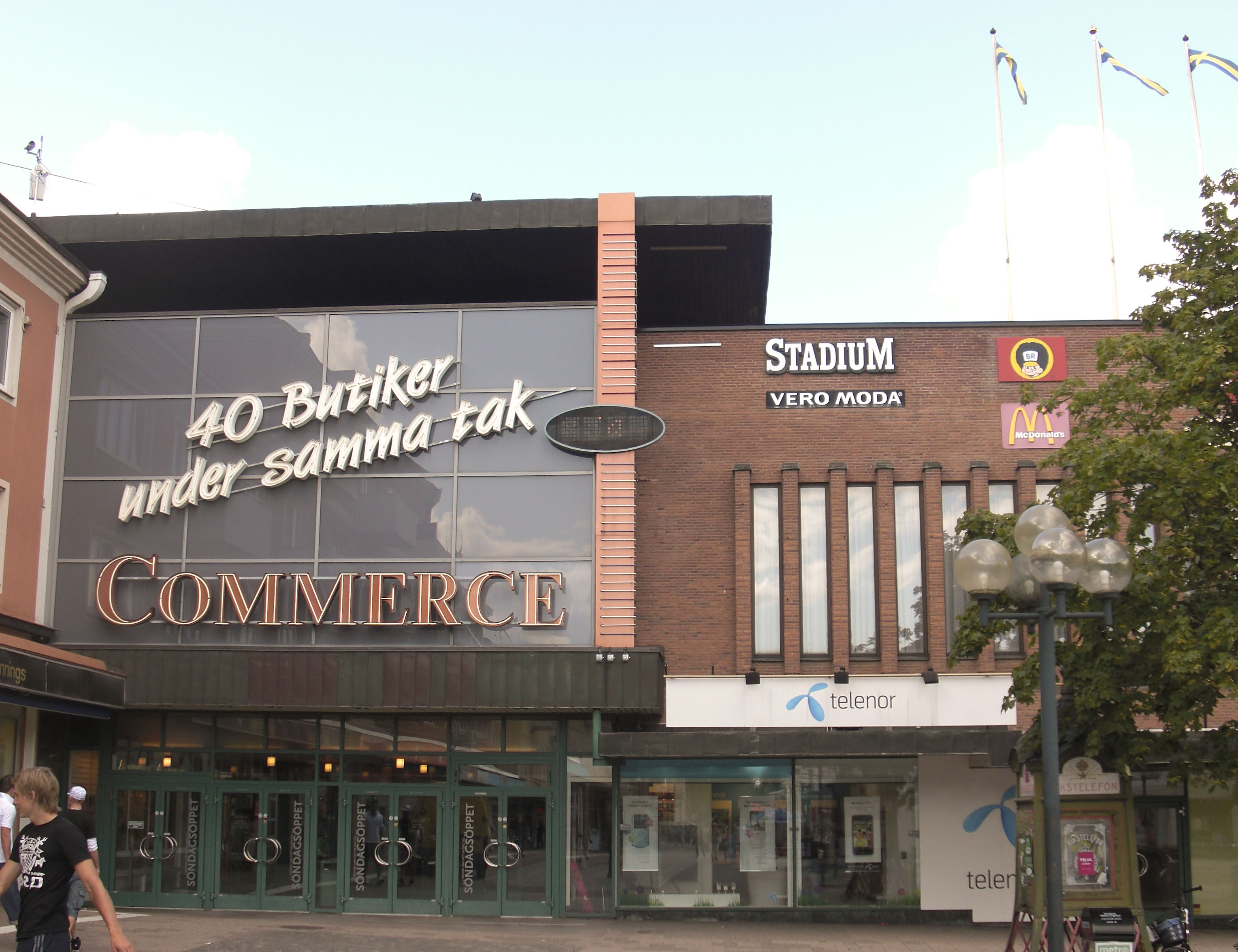 노르말름 상업 지구에는 구스타부스 아돌푸스게탄을 따라 약 20개의 상점이 있다. 여기에는 30개의 상점, Ica Maxi 슈퍼마켓, 레스토랑 및 카페가 있는 엘린스 에스플라나드(구 맥시 하우스)가 있으며, 수천 개의 무료 주차 공간이 있다. 엘린스 에스플라나드는 2008년 11월 28일에 개장했다.