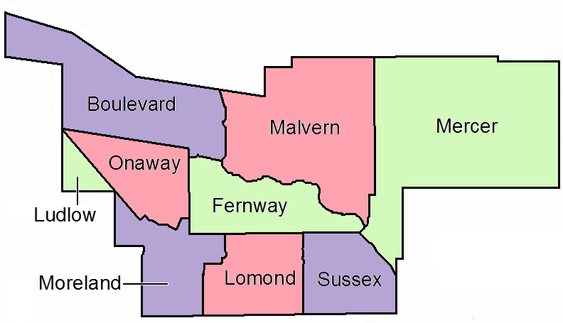 멜번(Malvern)주로 주거 지역이며, 해더웨이 브라운 스쿨(Hathaway Brown School)이 있다. 아동 발달 센터인 한나 퍼킨스 센터(Hanna Perkins Center)가 옛 멜번 학교 건물을 사용하고 있다.[20]
