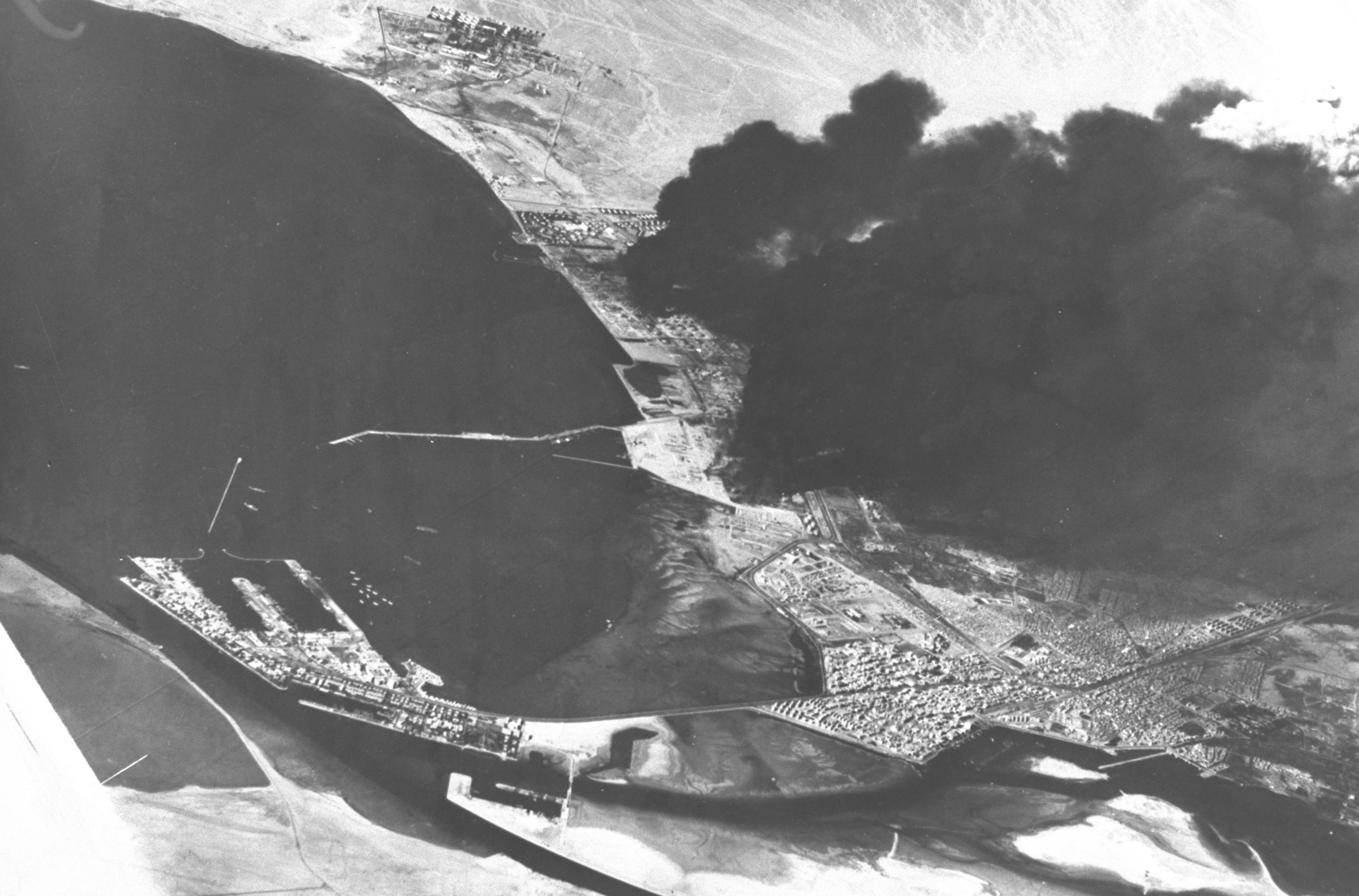 - '''1967년 10월''': ''Eilat'' 격침에 대한 보복으로 이스라엘 포병이 수에즈 인근의 정유 공장과 저장소를 포격했다. 10월 내내 이어진 일련의 포격전에서 이집트 측은 민간인 사상자를 냈다. 이집트는 운하 지역의 많은 민간인을 대피시켰다.[32]