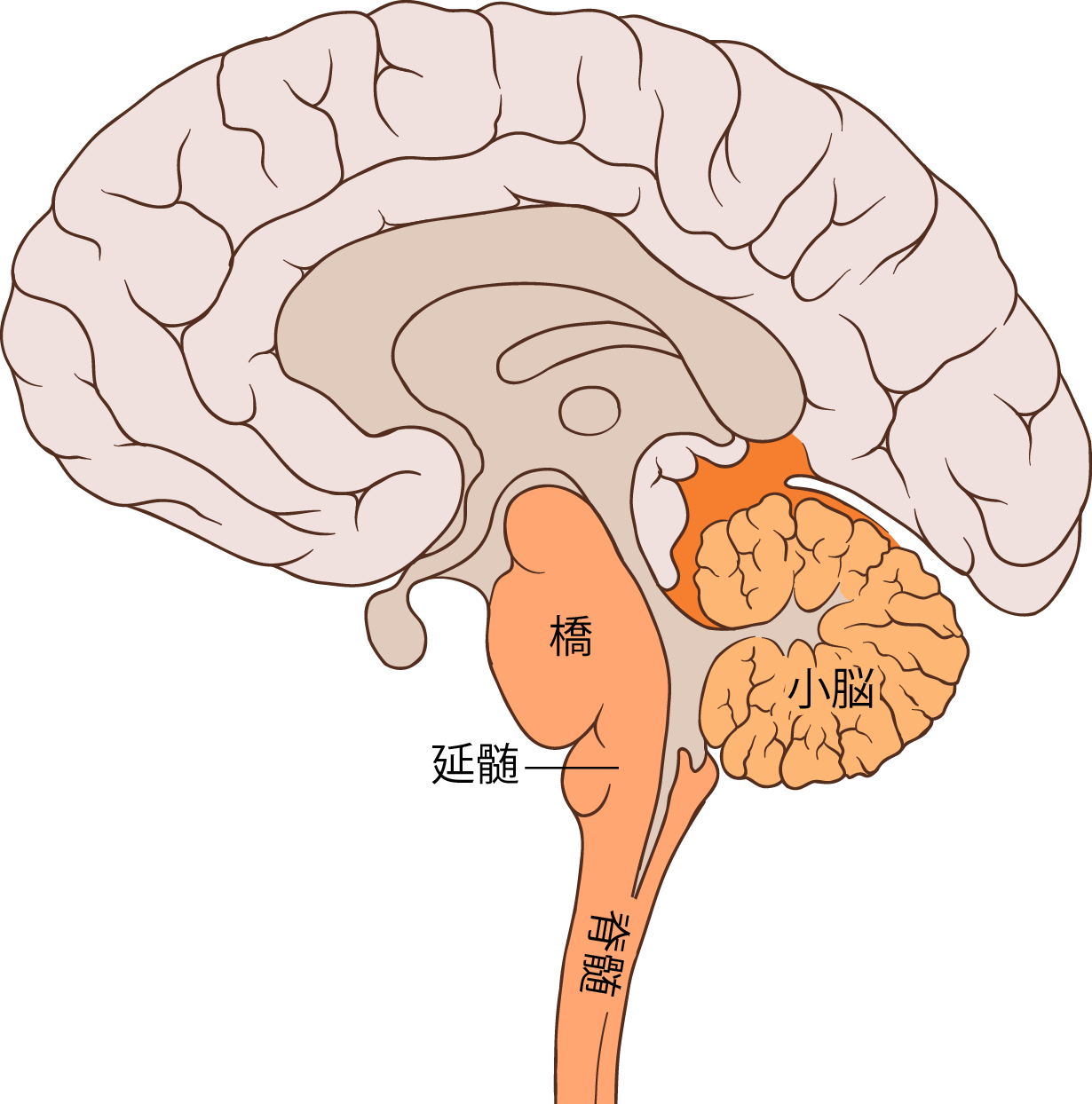신경 세포의 파괴는 척수 신경절 내에 병변을 생성하며, 이는 그물 형성체, 전정 신경핵, 소뇌 벌레, 그리고 심부 소뇌 핵에서도 발생할 수 있다. 신경 세포 파괴와 관련된 염증은 종종 척주의 회백질의 색상과 외관을 변화시켜 붉고 부어 보이게 한다.[15]