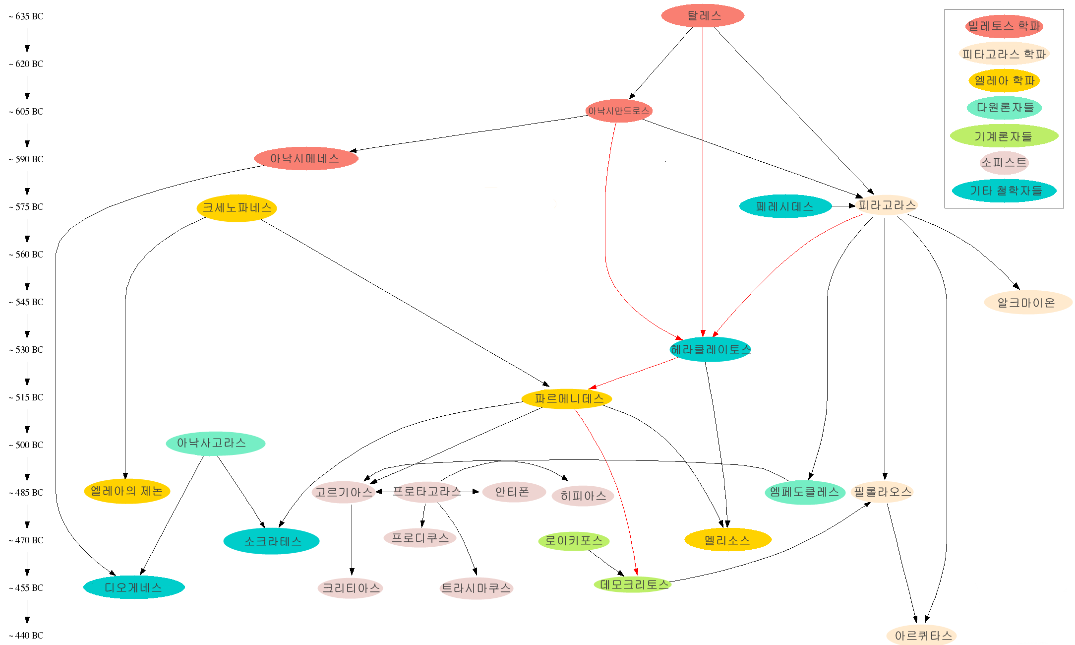 - 피타고라스 학파: 피타고라스, 필롤라오스, 알크마이온, 아르퀴타스, 티마이오스