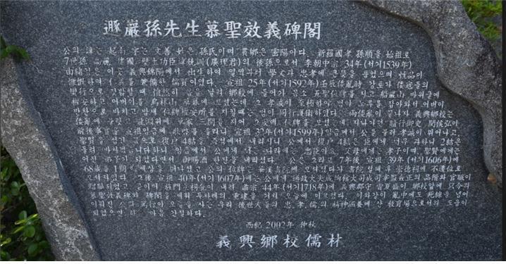 유허비각은 1915년 손기남의 9대손 손치붕 등 후손들이 그의 효의정신을 기리기 위해 금양마을에 세운 비각이다.