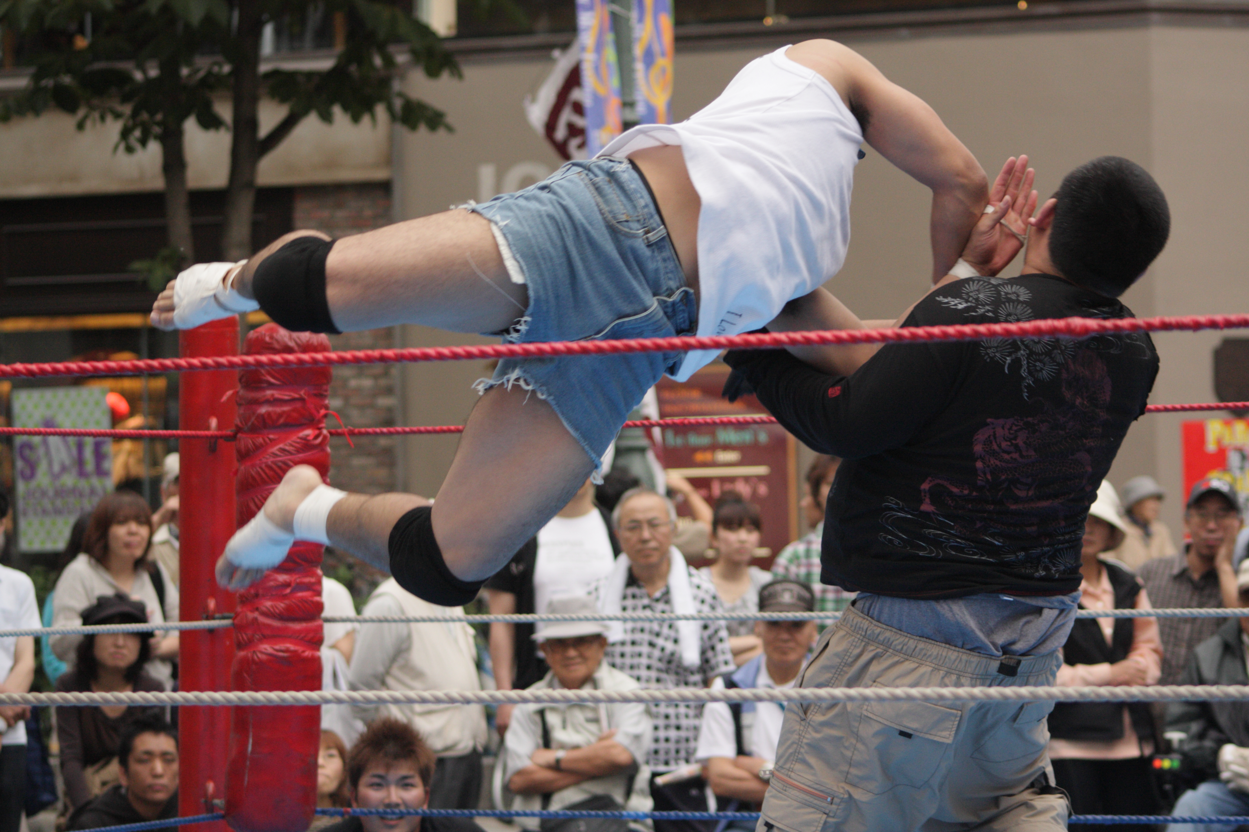 동양을 연상시키는 탓에, 미국에서는 일본계 악역 레슬러나 한국인 선수 박손도 사용했다[22]。 해외 원정 시 일본인 선수도 일본인다움을 어필하기 위해, 평소에는 사용하지 않는 촙 공격을 선보이기도 했다.
