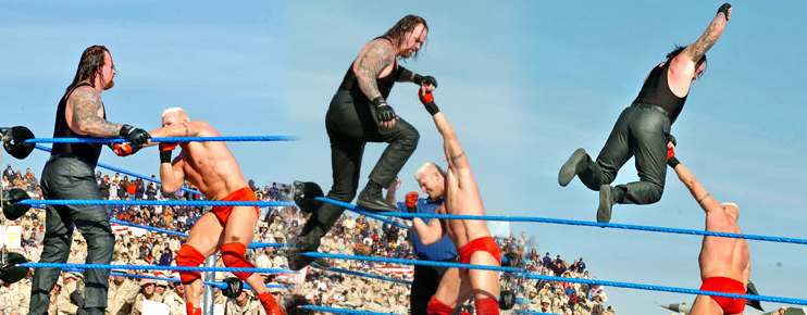 - '''올드 스쿨''' (올드 스쿨): 상대 팔을 비틀어 올리고 탑 로프 위를 걸어 촙을 날리는 기술이다. 언더테이커 오리지널이다.[23]