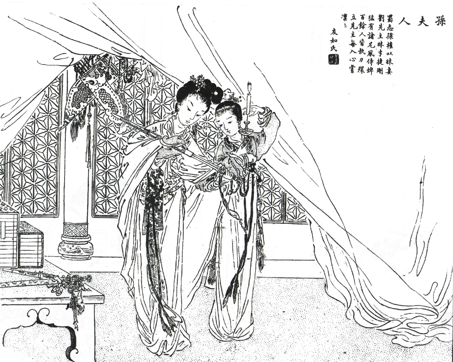 청나라 시대의 『백미신영도전』에 따르면, 손부인은 중국 역대에서 가장 이름난 미인 백 명에 선정되었다.[22]
