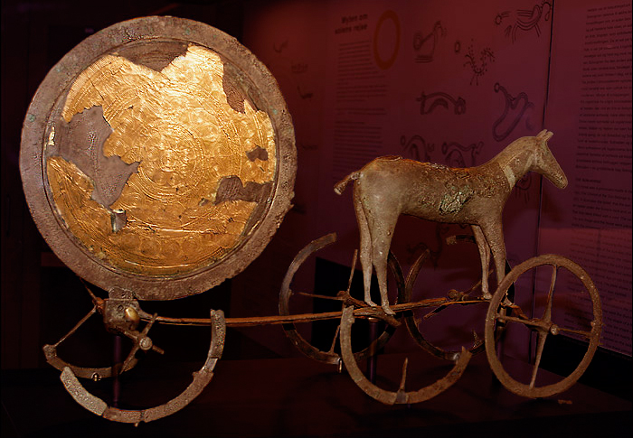루돌프 시메크는 북유럽 청동기 시대의 암각화와 트룬홀름 태양 전차와 같은 고고학적 발견이 청동기 시대 스칸디나비아인들에게 태양이 생명을 주는 천체로 여겨졌다는 충분한 증거를 제공하며, 태양은 항상 어느 정도의 숭배를 받았을 것이라고 말한다. 시메크는 태양의 의인화를 보여주는 유일한 증거는 고대 고지 독일 주문 참조와 ''고대 에다'' 시에서 비롯되며, 이 두 가지 참조 모두 게르만 태양 숭배를 추정할 만큼 충분한 정보를 제공하지 못한다고 말한다. 시메크는 "반면에" 청동기 시대부터 중세 시대까지 빈번하게 발생하는 종교적 관행에서 태양 상징과 배의 조합은 의인화된 태양이 아닌 (바니르 신인 뇨르드 또는 프레이르와 같은) 다산 신과 관련된 종교적 관행에서 파생된 것으로 보인다고 가정한다.[19]